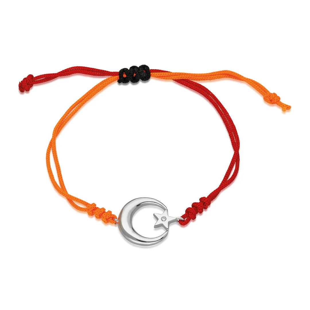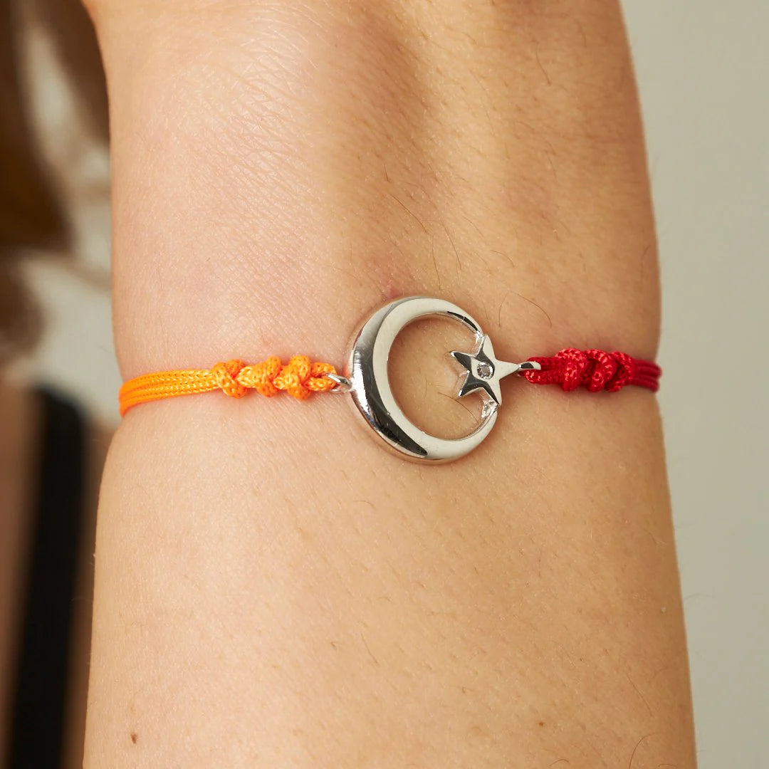 Ay Yıldızlı Renkli İp Bileklik | 925 Gümüş
