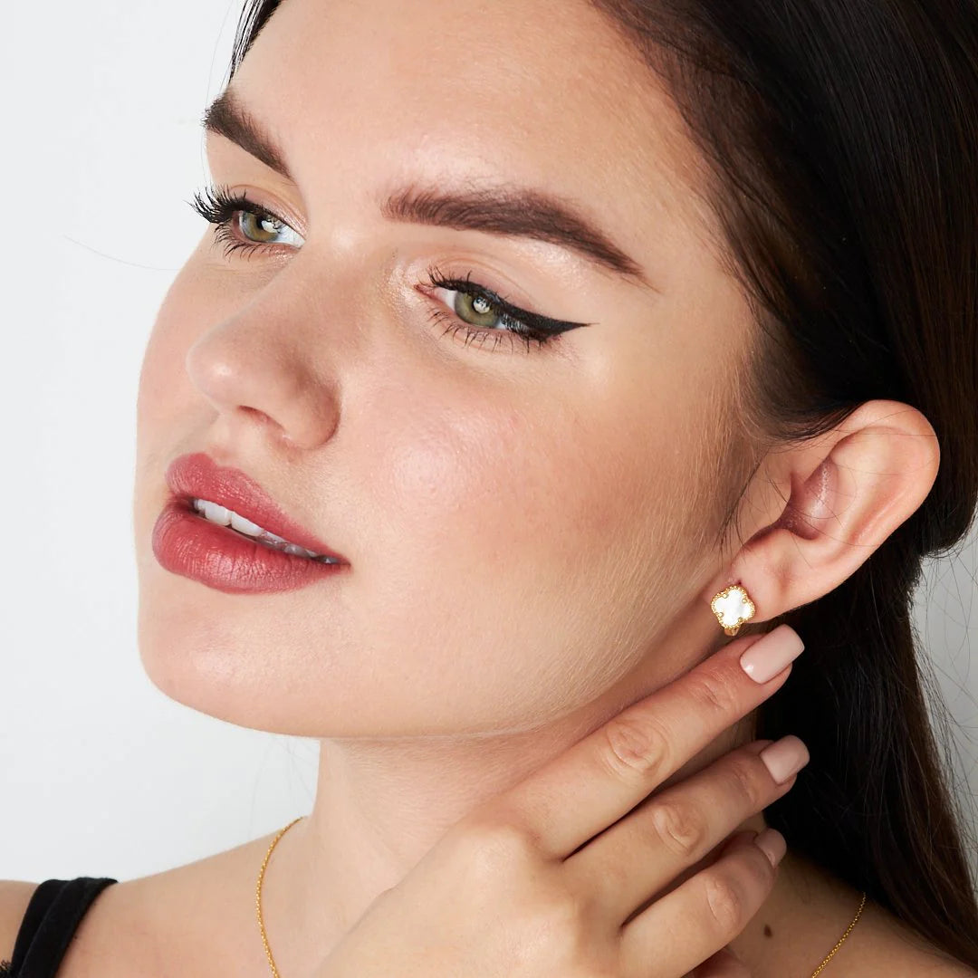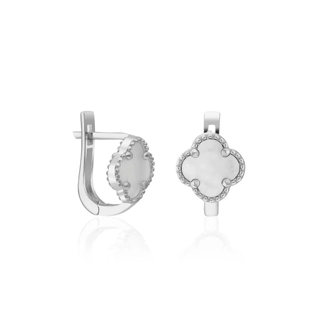 Beyaz Taşlı Yonca Yaprağı Küpe | 925 Gümüş
