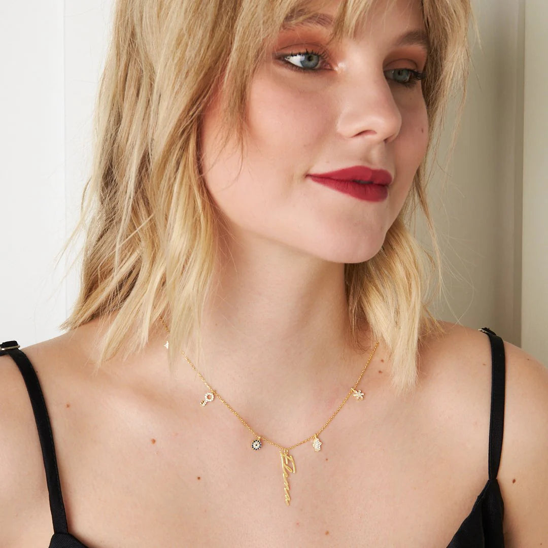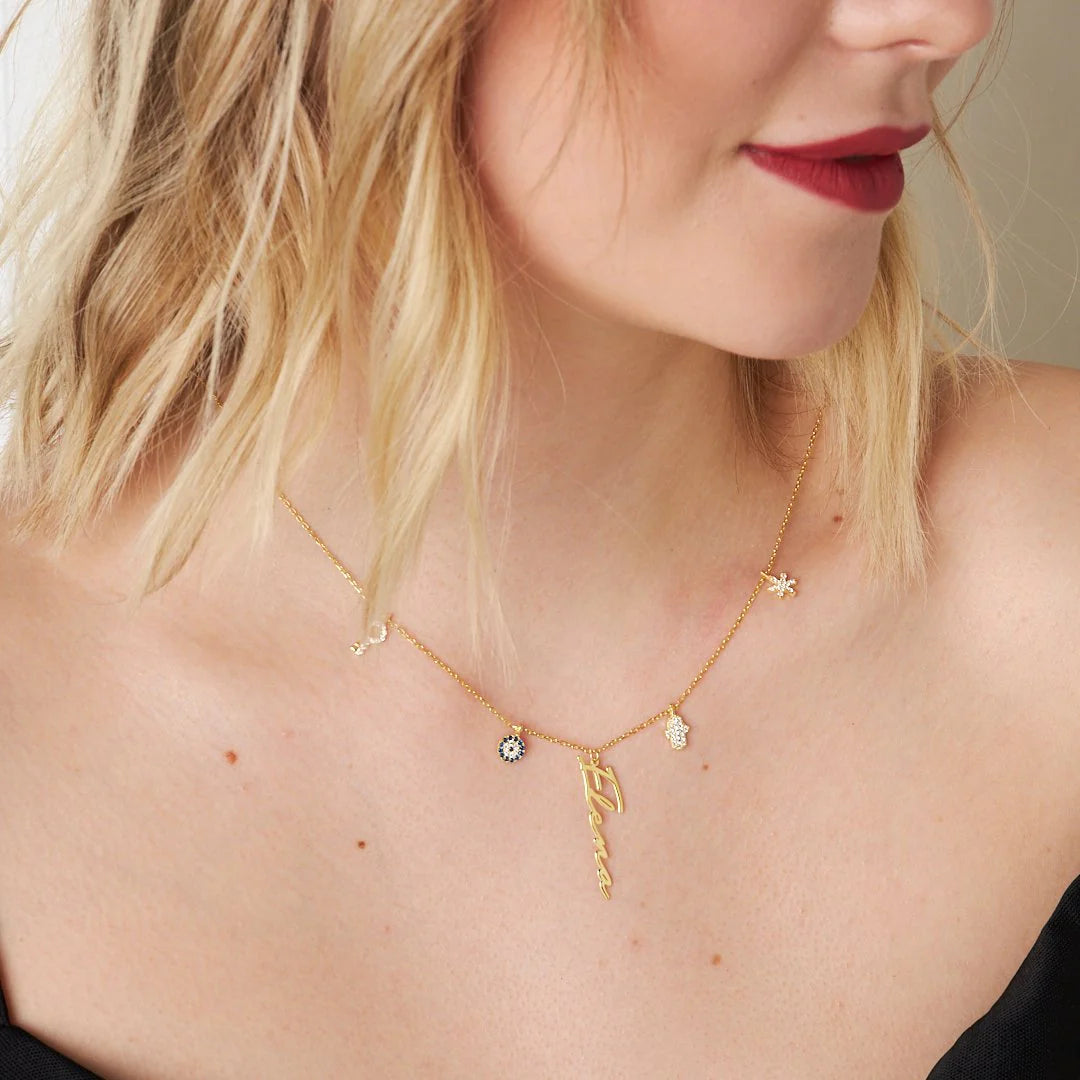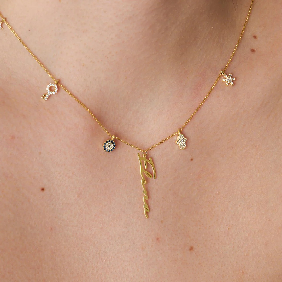 Charm Detaylı İsim Kolye | 925 Gümüş