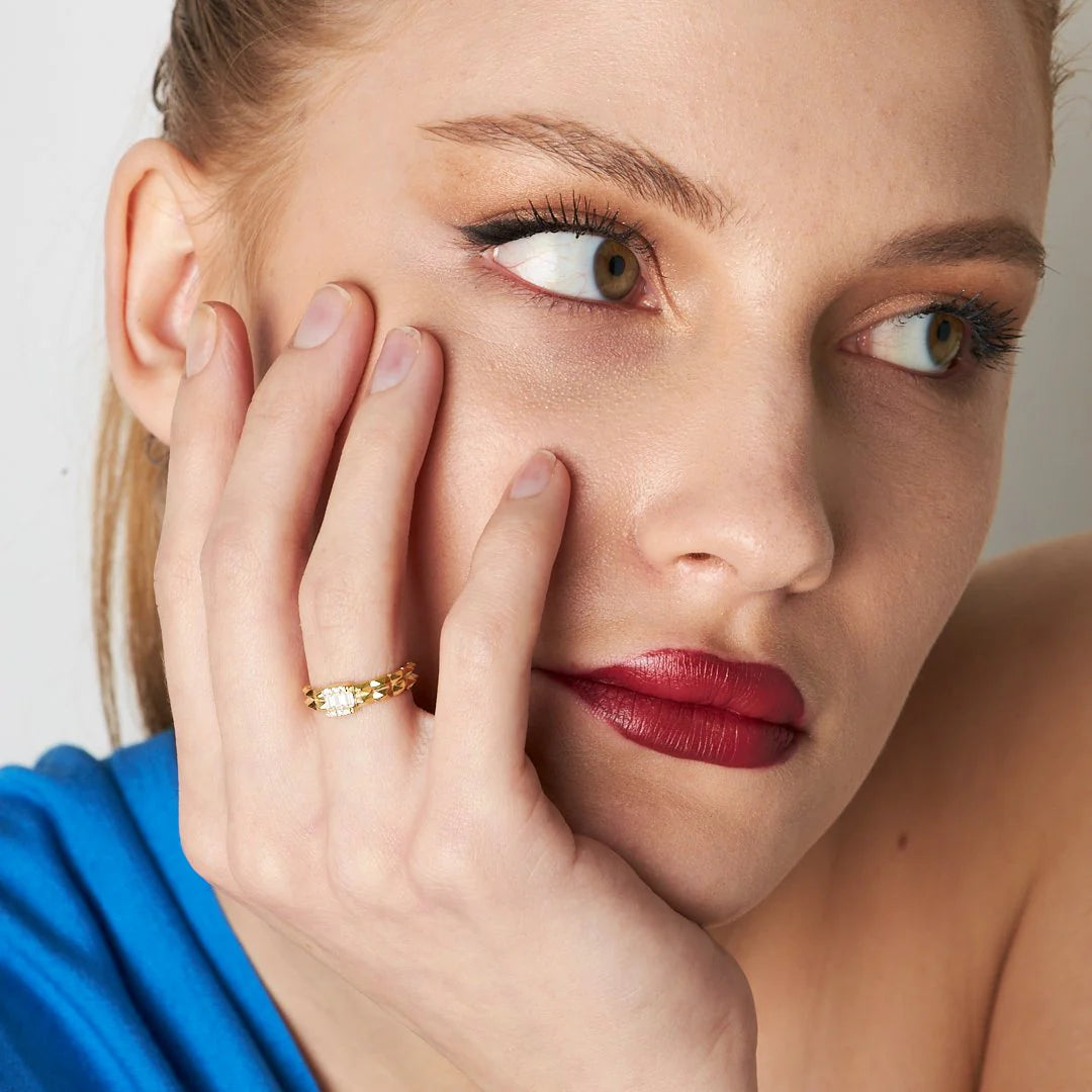 Dalga Tasarımlı Taşlı Yüzük | 925 Gümüş