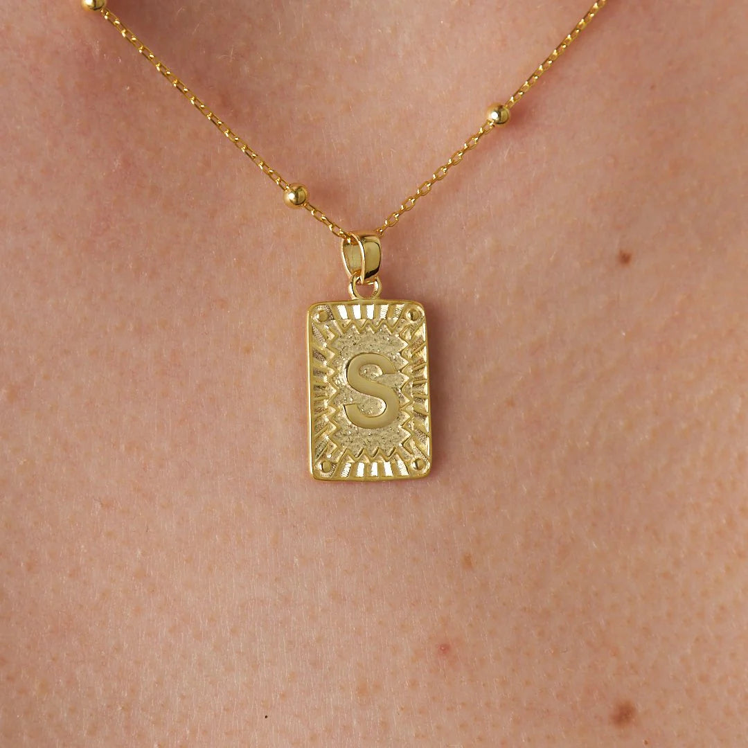Dikdörtgen Plaka Harf Kolye | 925 Gümüş