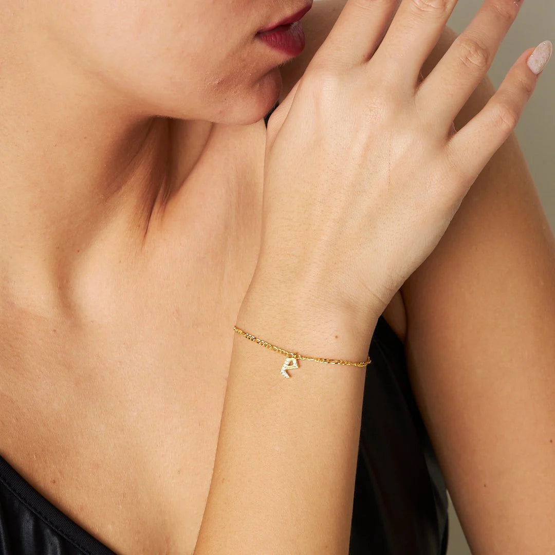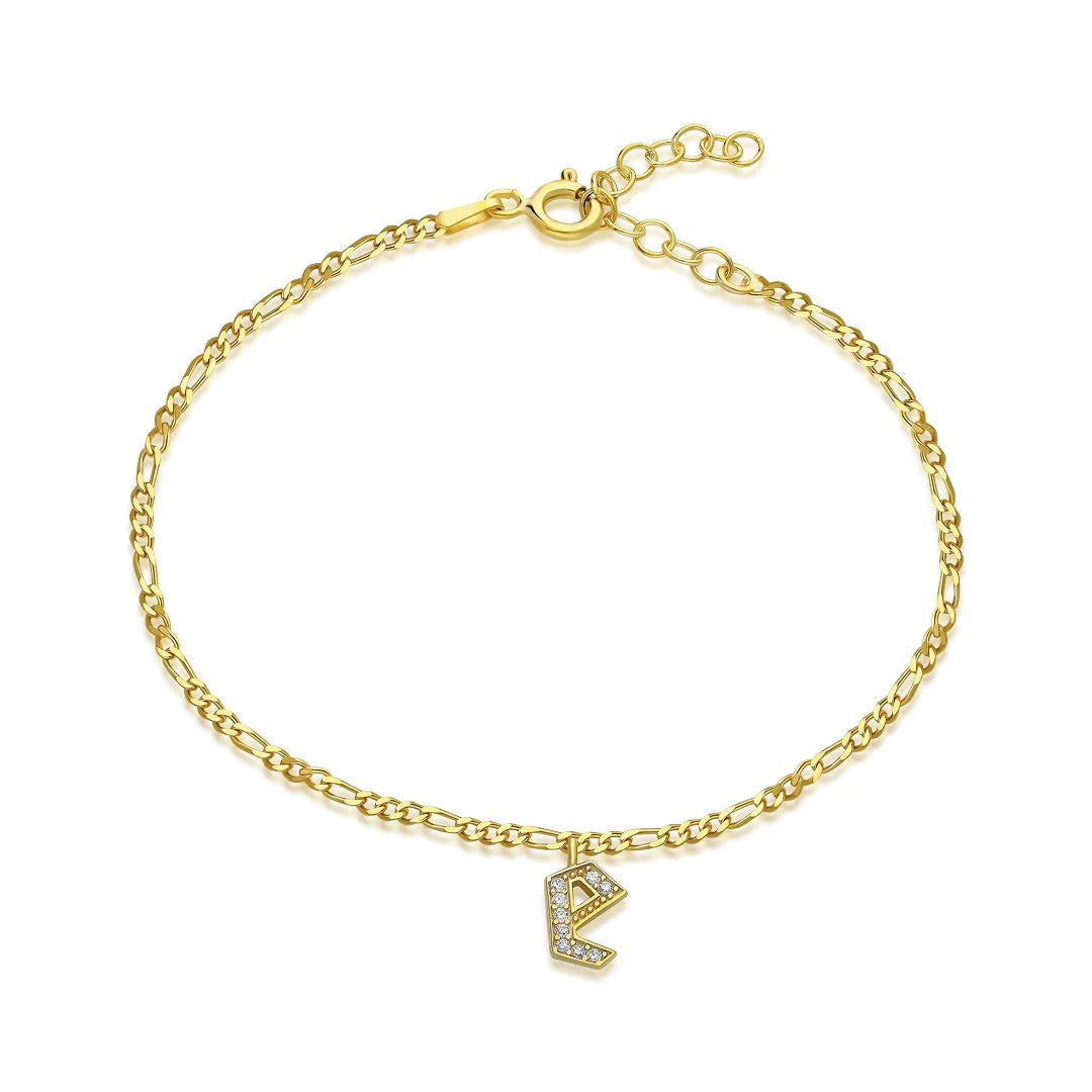 Figaro Taşlı Harf Bileklik | 925 Gümüş