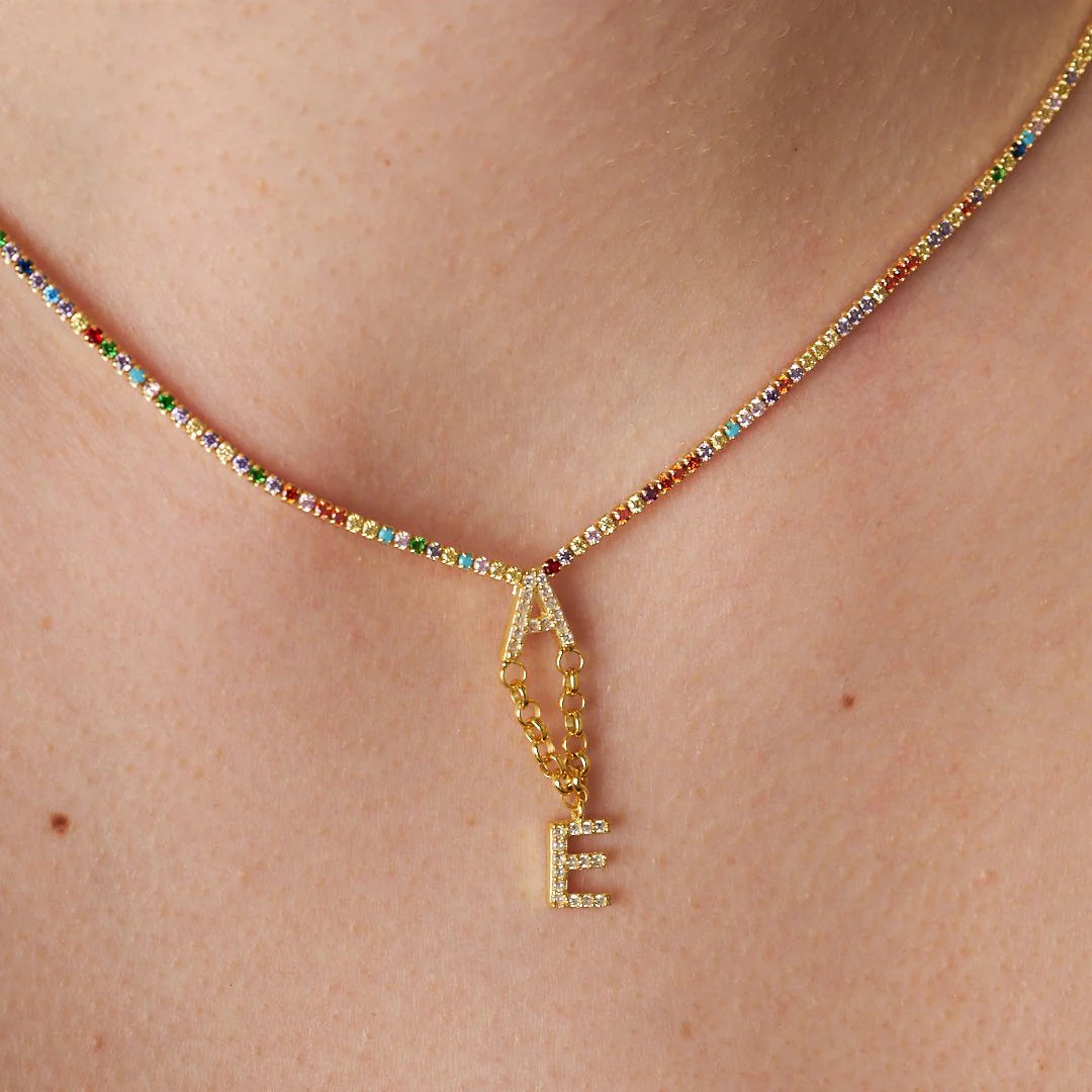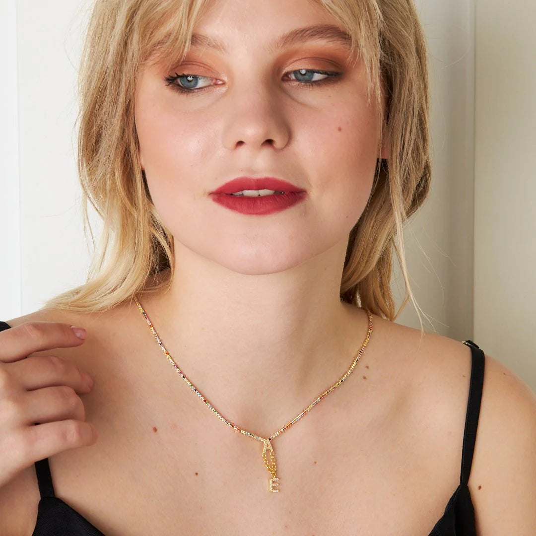 İki Harfli Renkli Su Yolu Kolye | 925 Gümüş