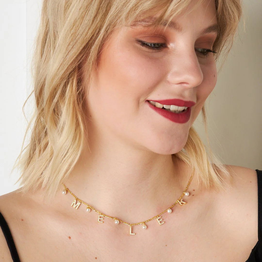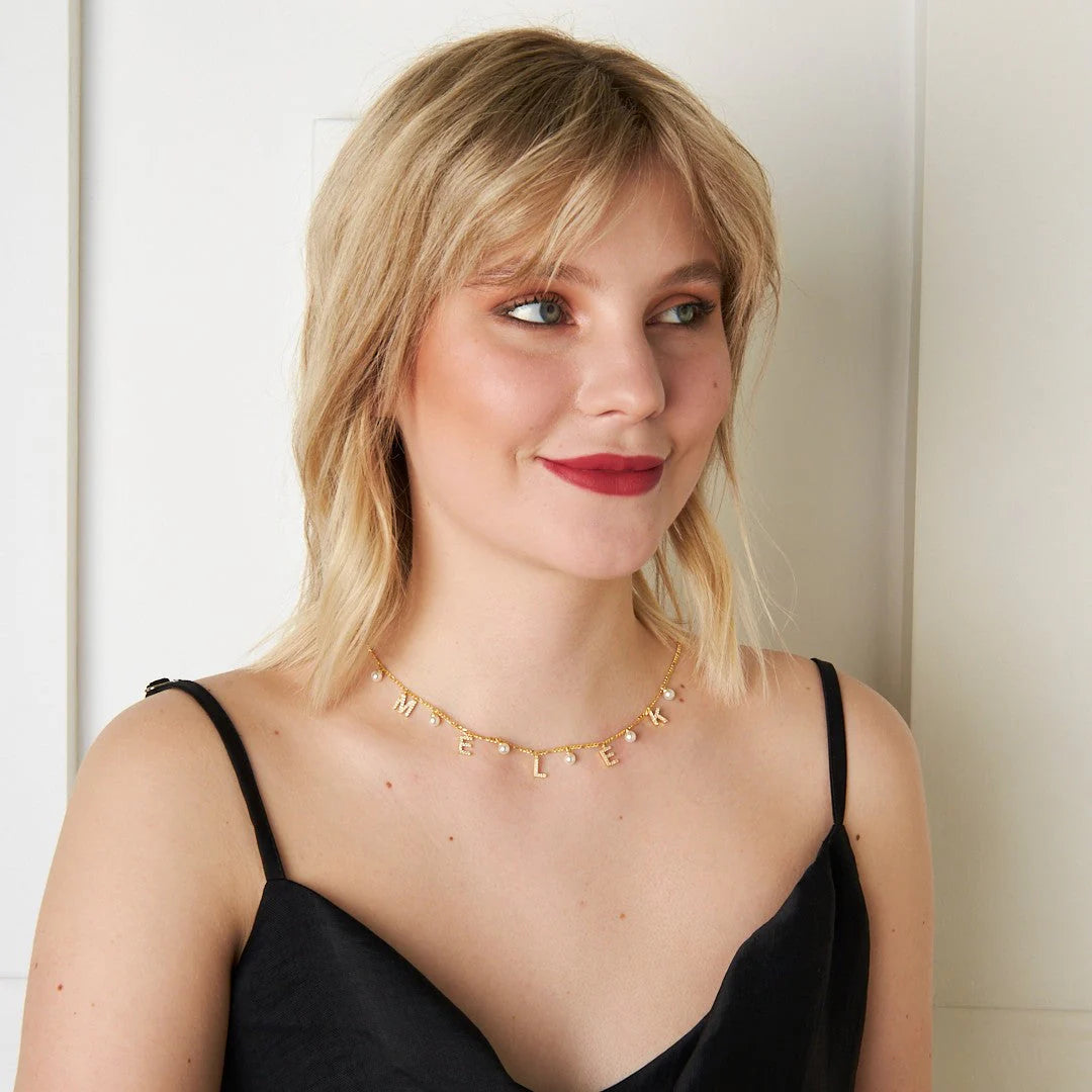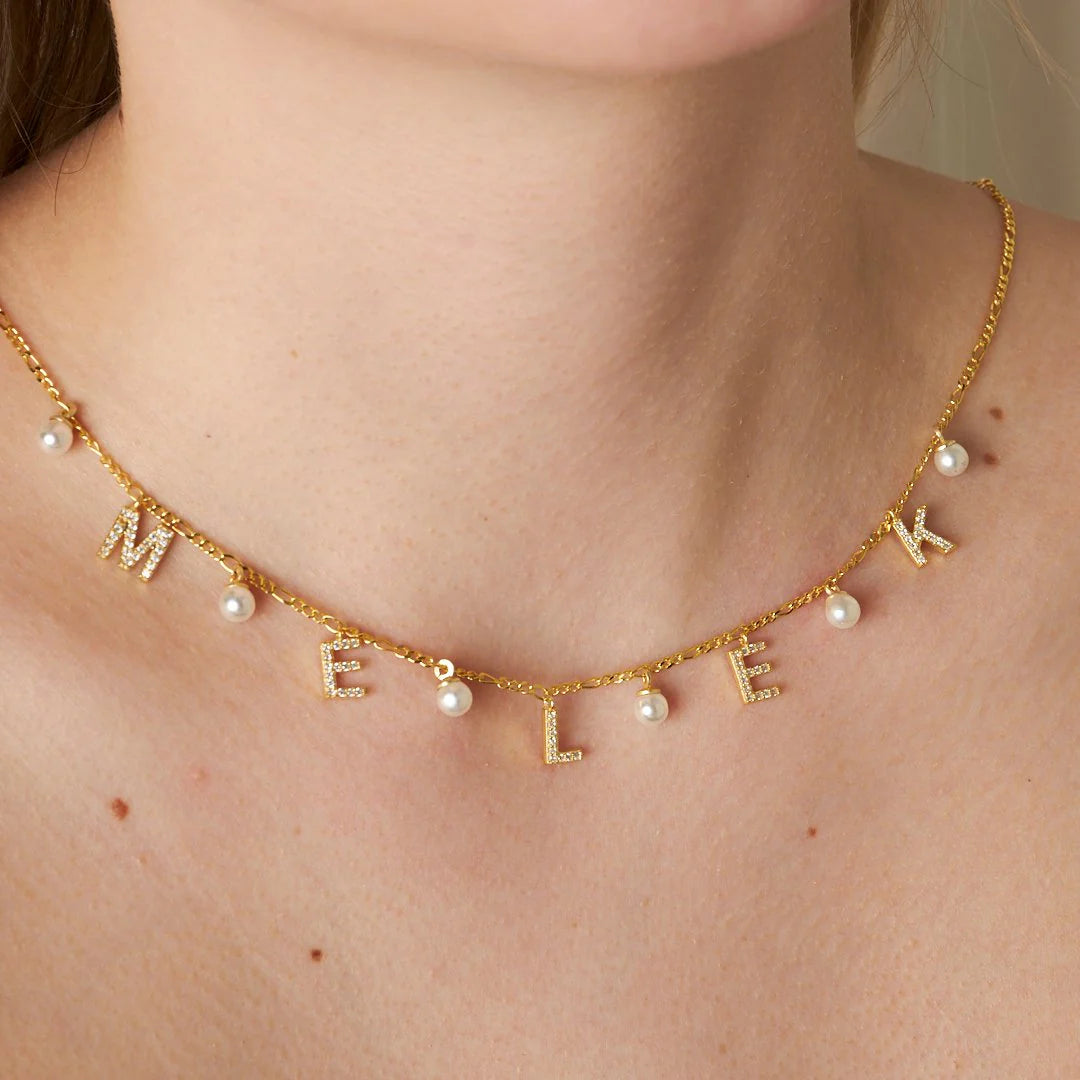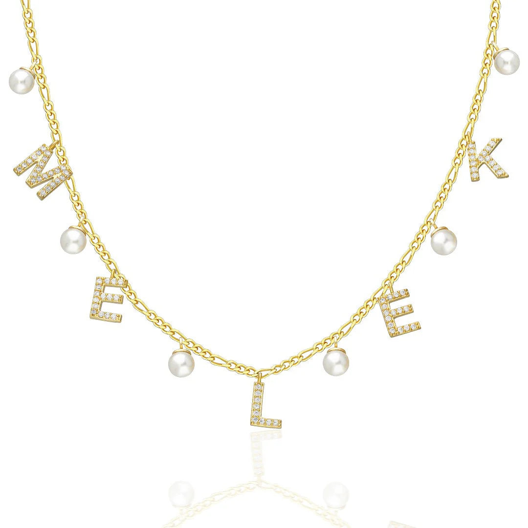 İnci Taşlı Figaro Zincir İsim Kolye | 925 Gümüş