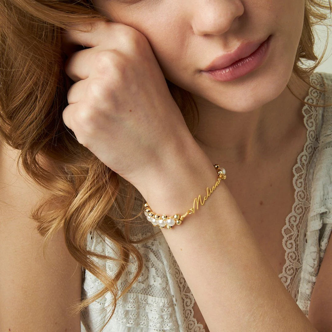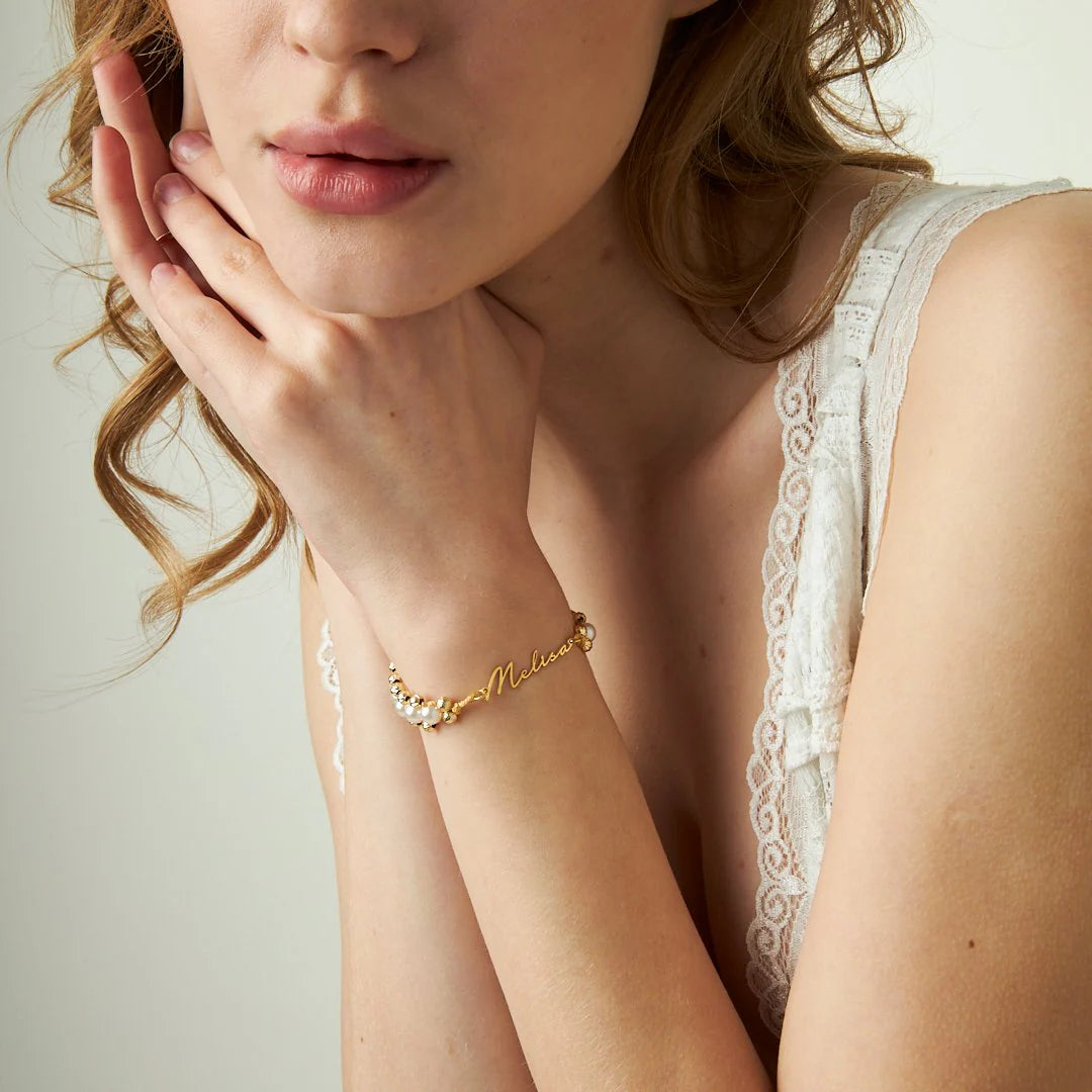 İnci Taşlı İsim Bileklik | 925 Gümüş