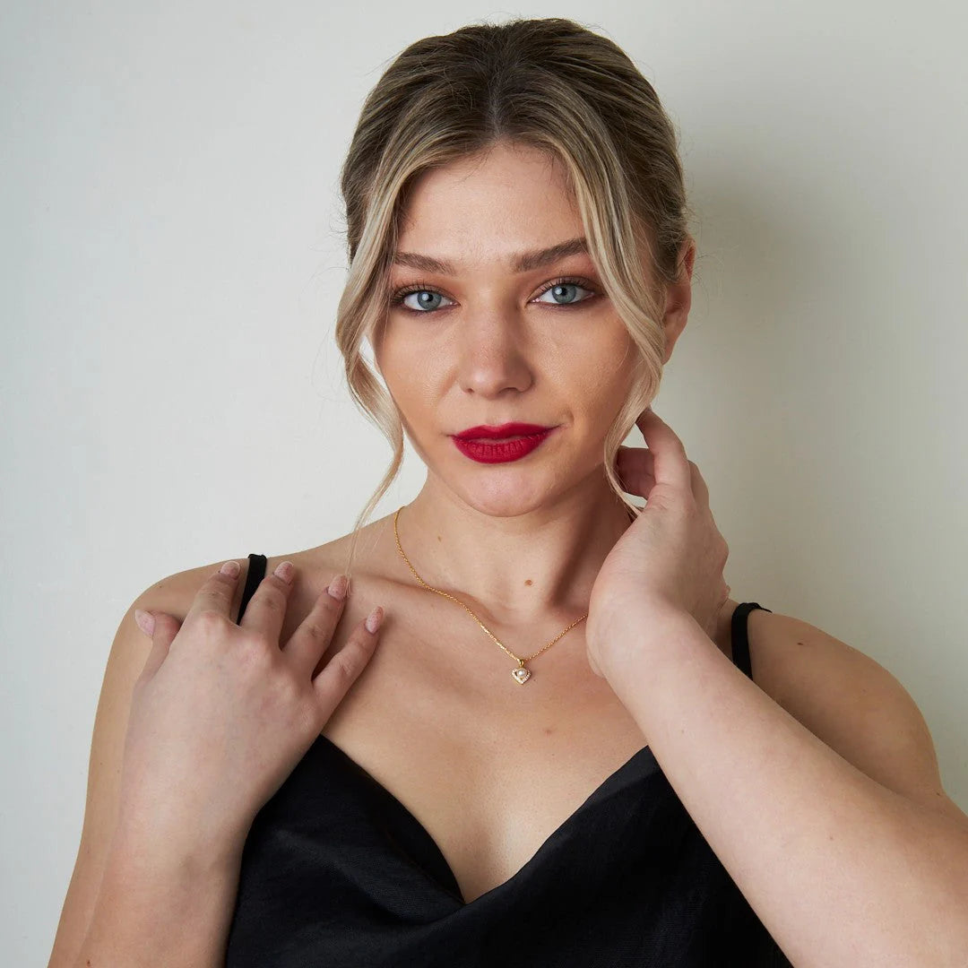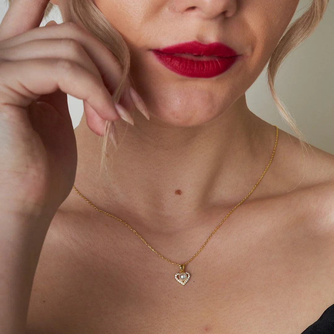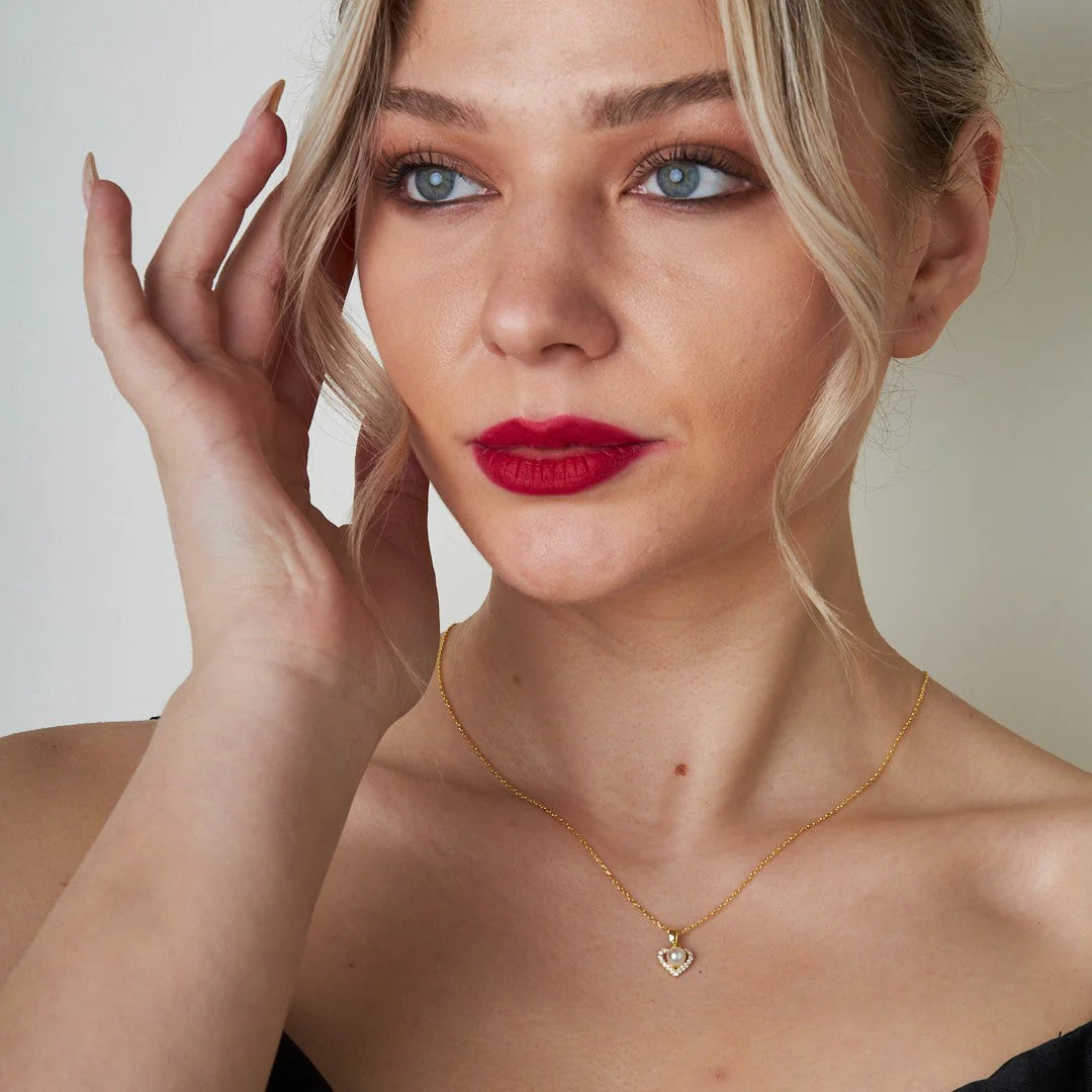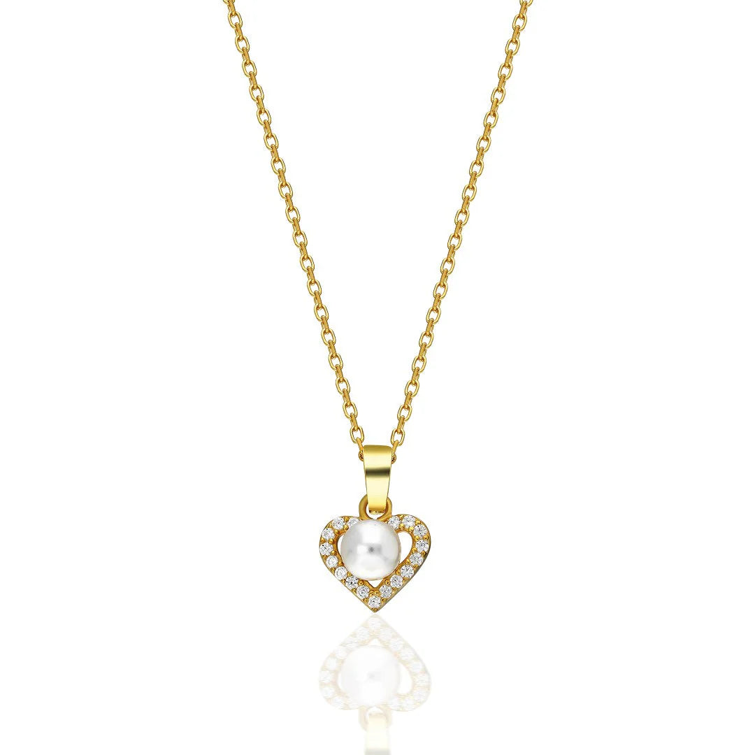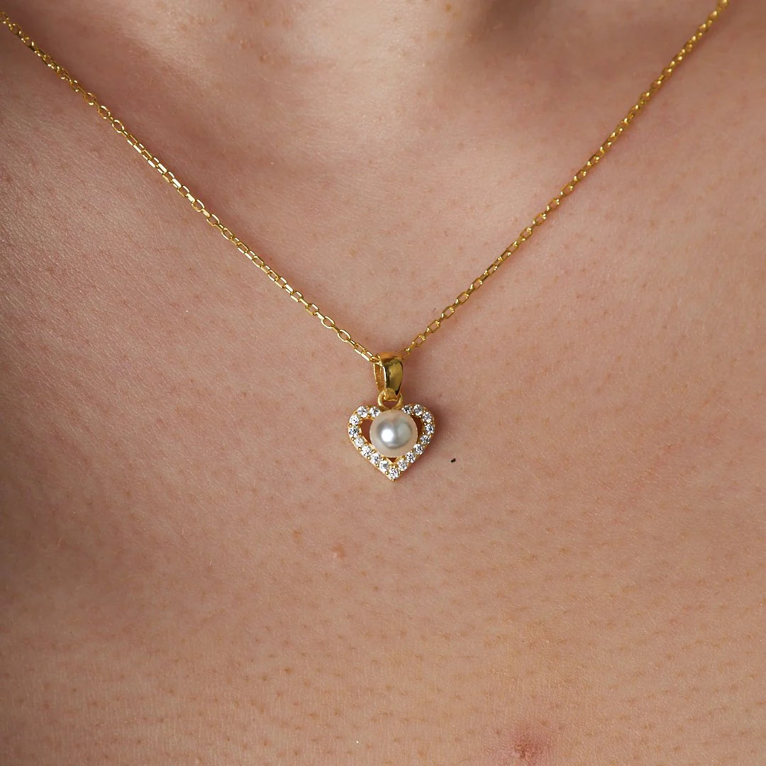 İnci Taşlı Kalp Kolye | 925 Gümüş