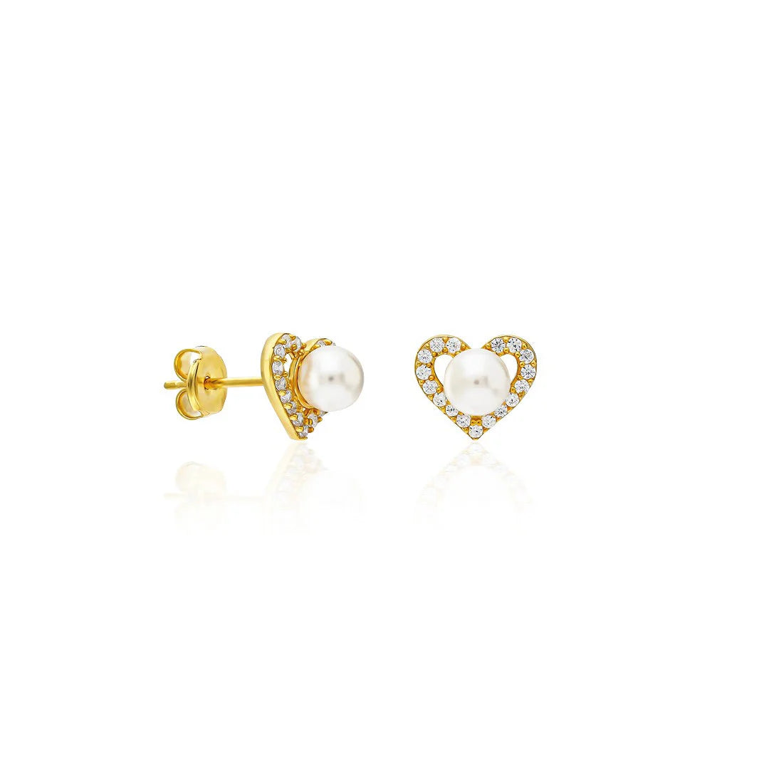 İnci Taşlı Kalpli Küpe | 925 Gümüş