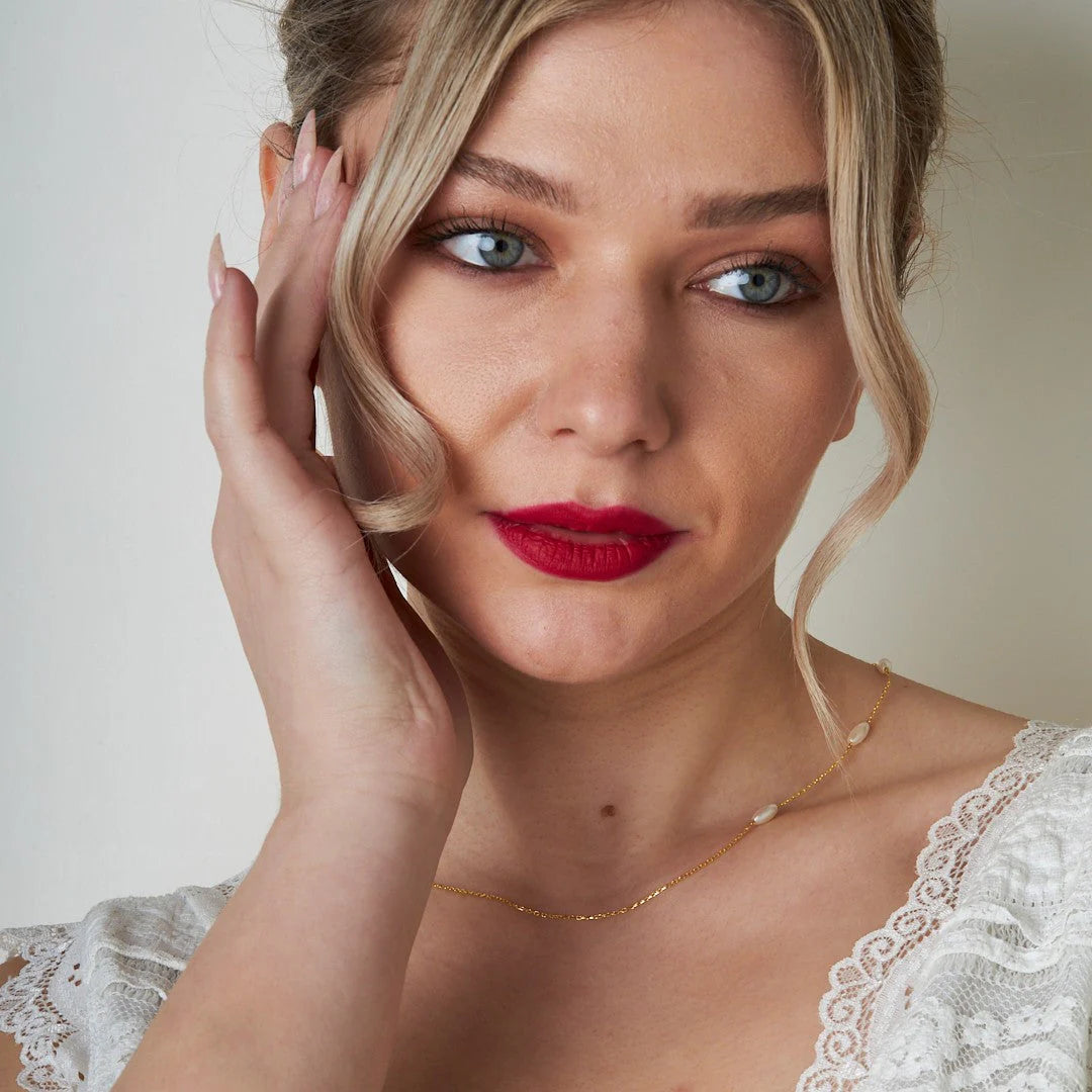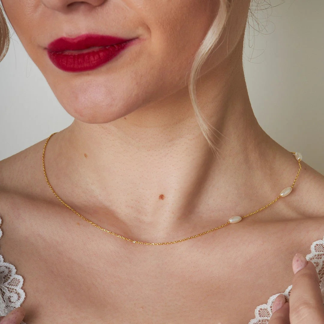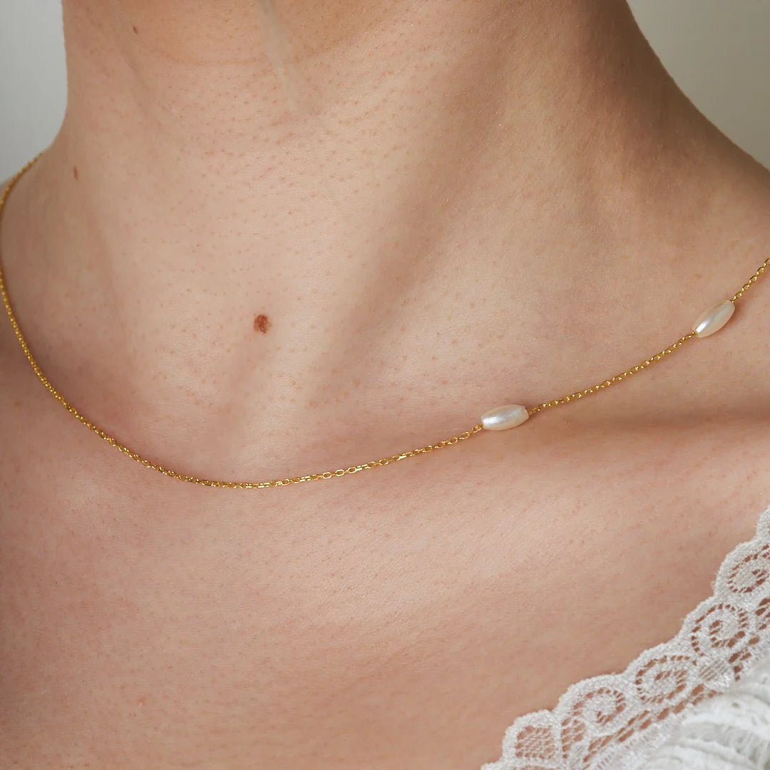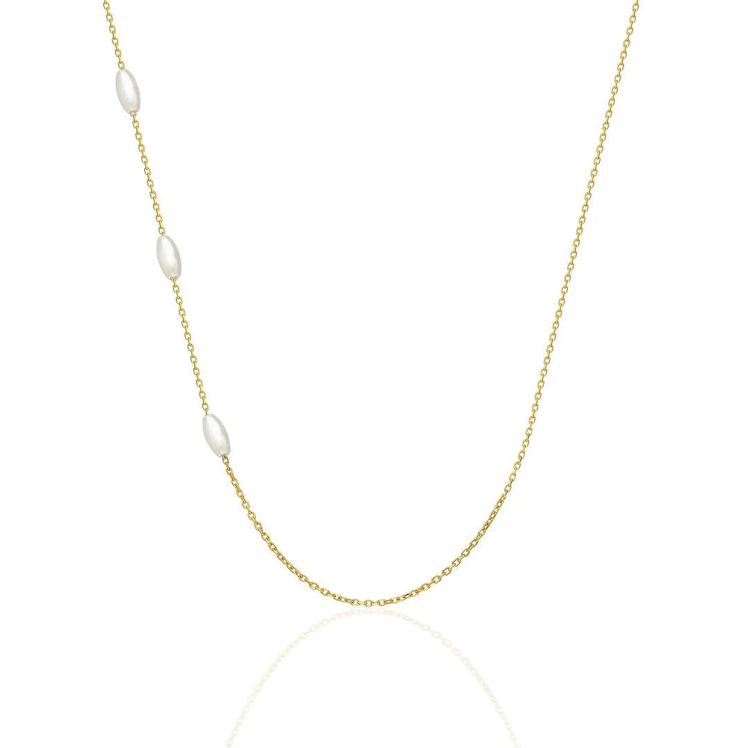 İnci Taşlı Zincir Kolye | 925 Gümüş