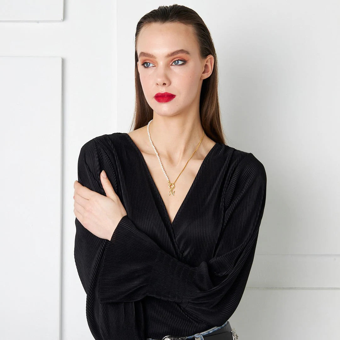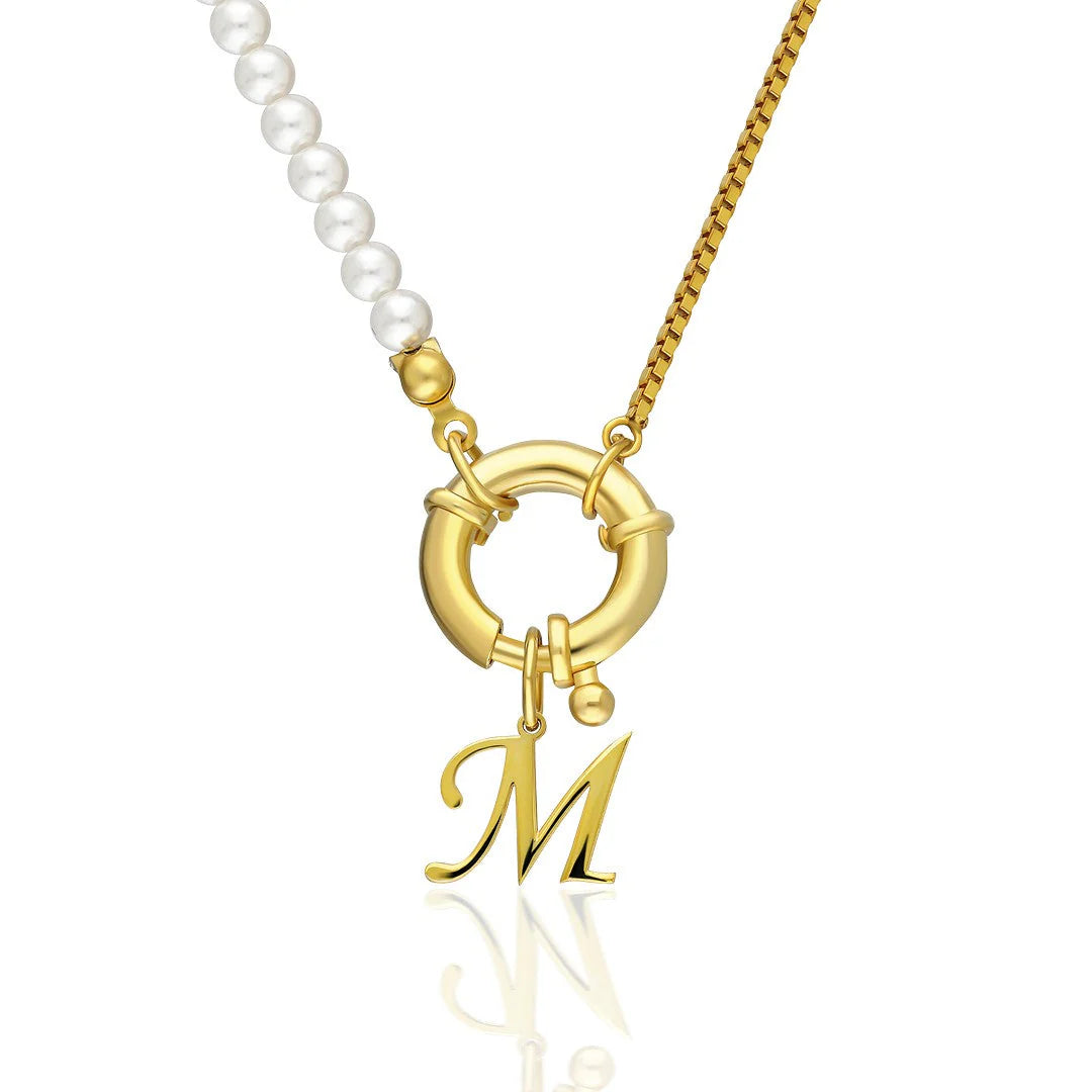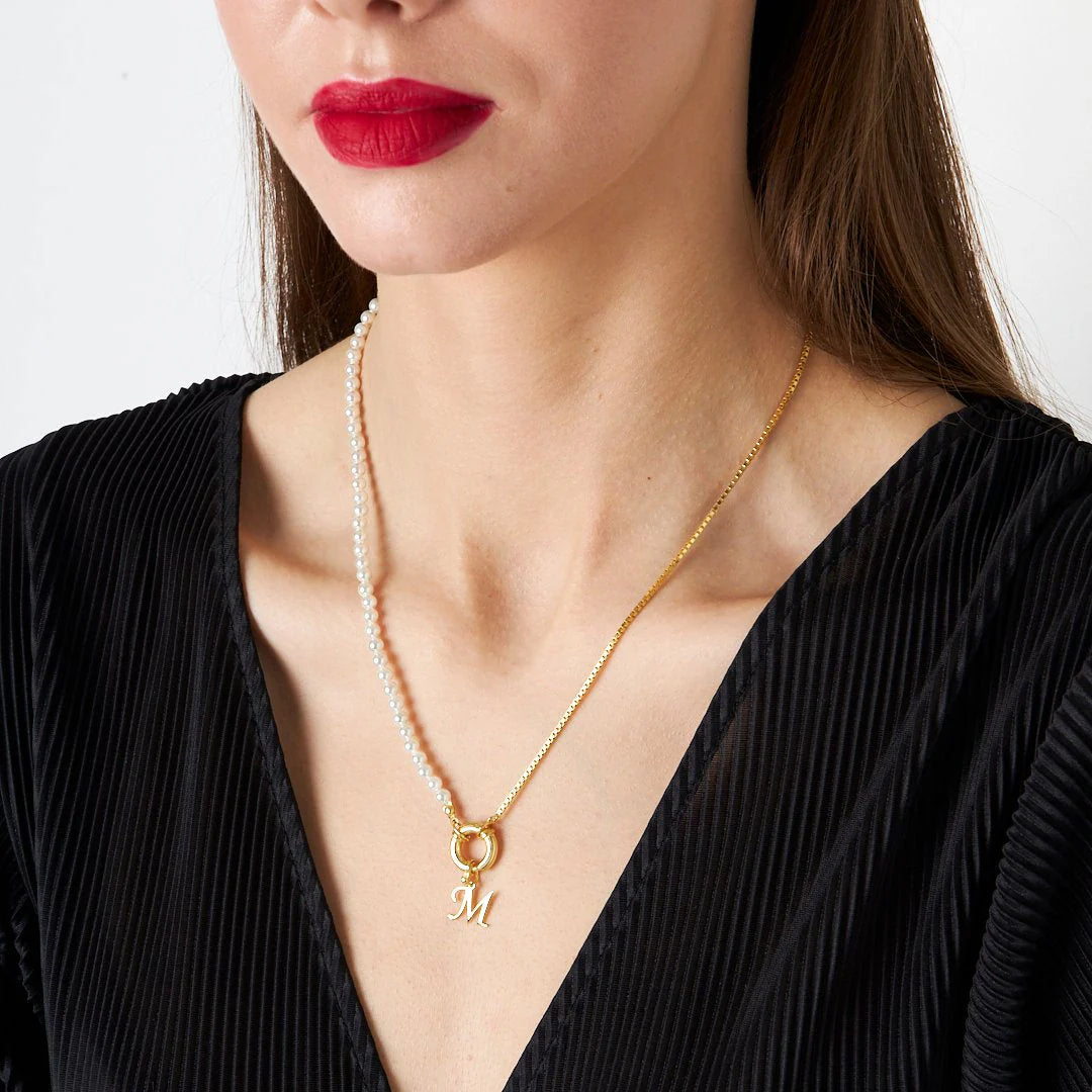 İnci Zincirli Harf Kolye | 925 Gümüş
