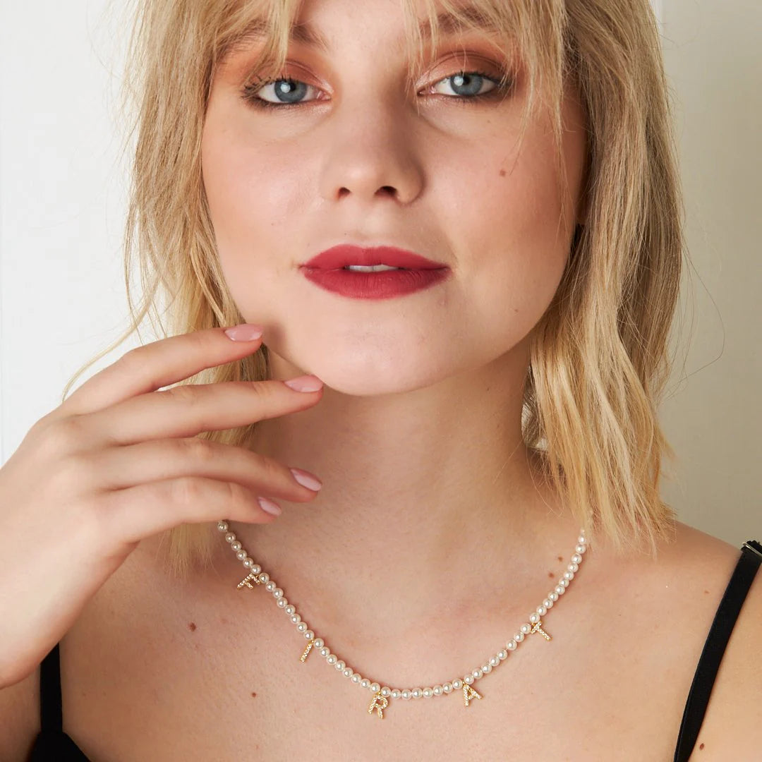 İnci Zincirli İsim Kolye | 925 Gümüş