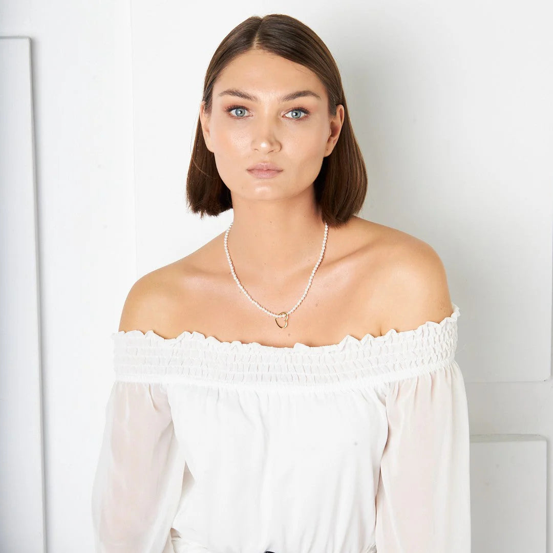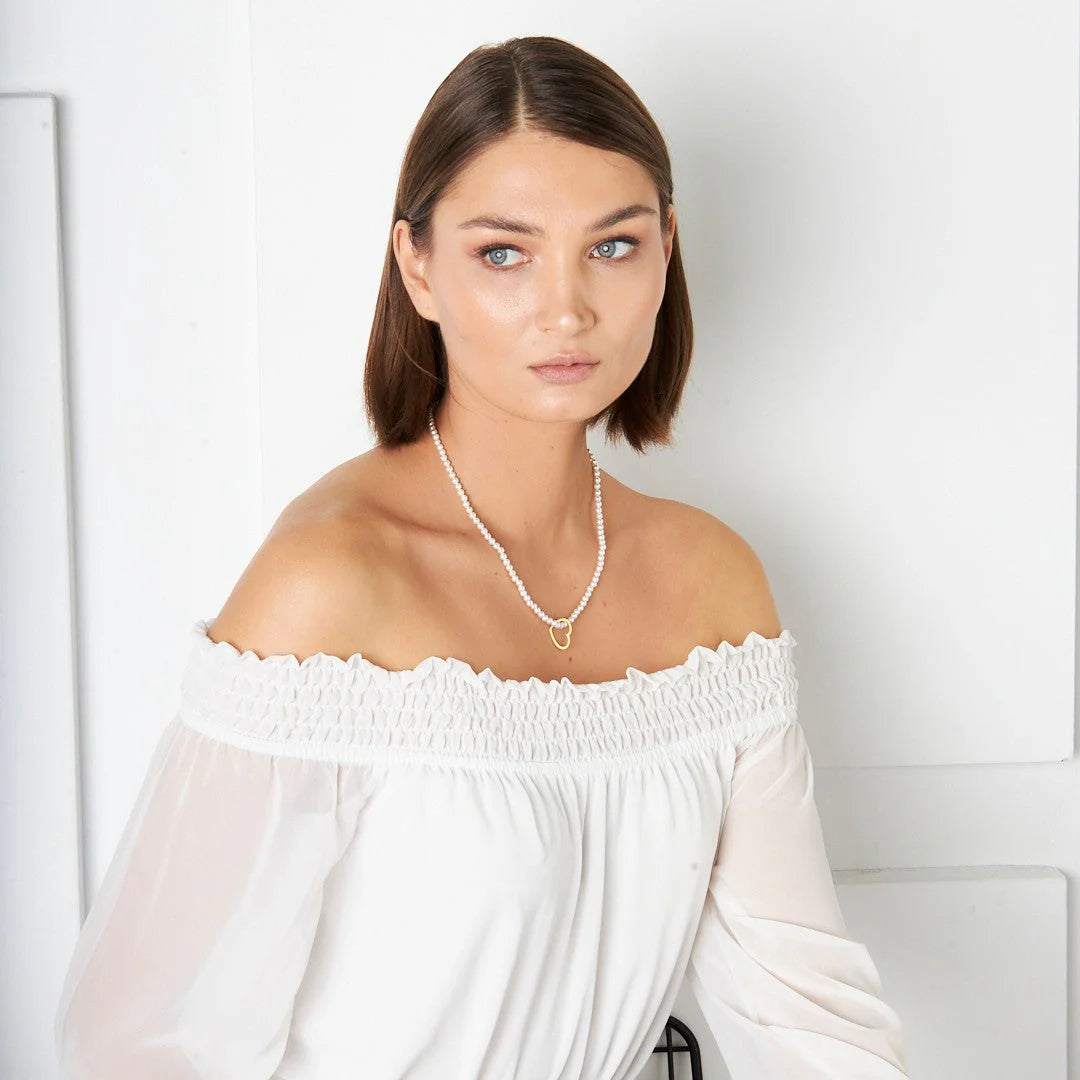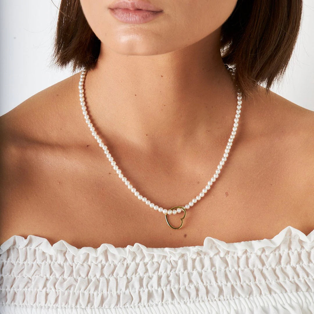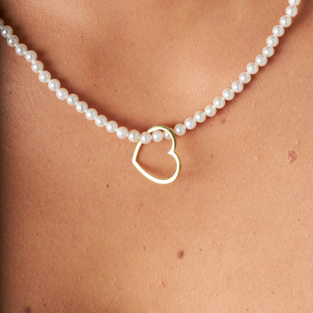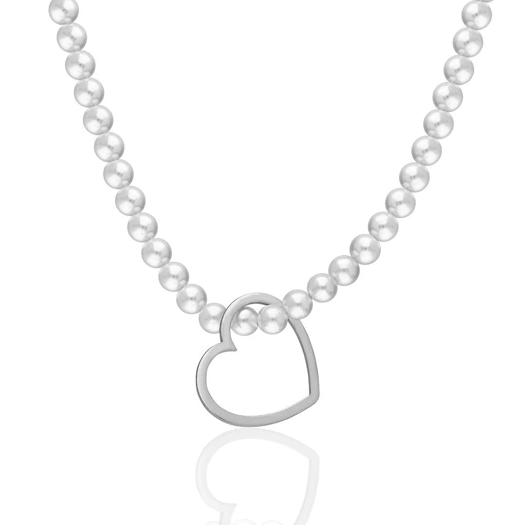 İnci Zincirli Kalpli Kolye | 925 Gümüş