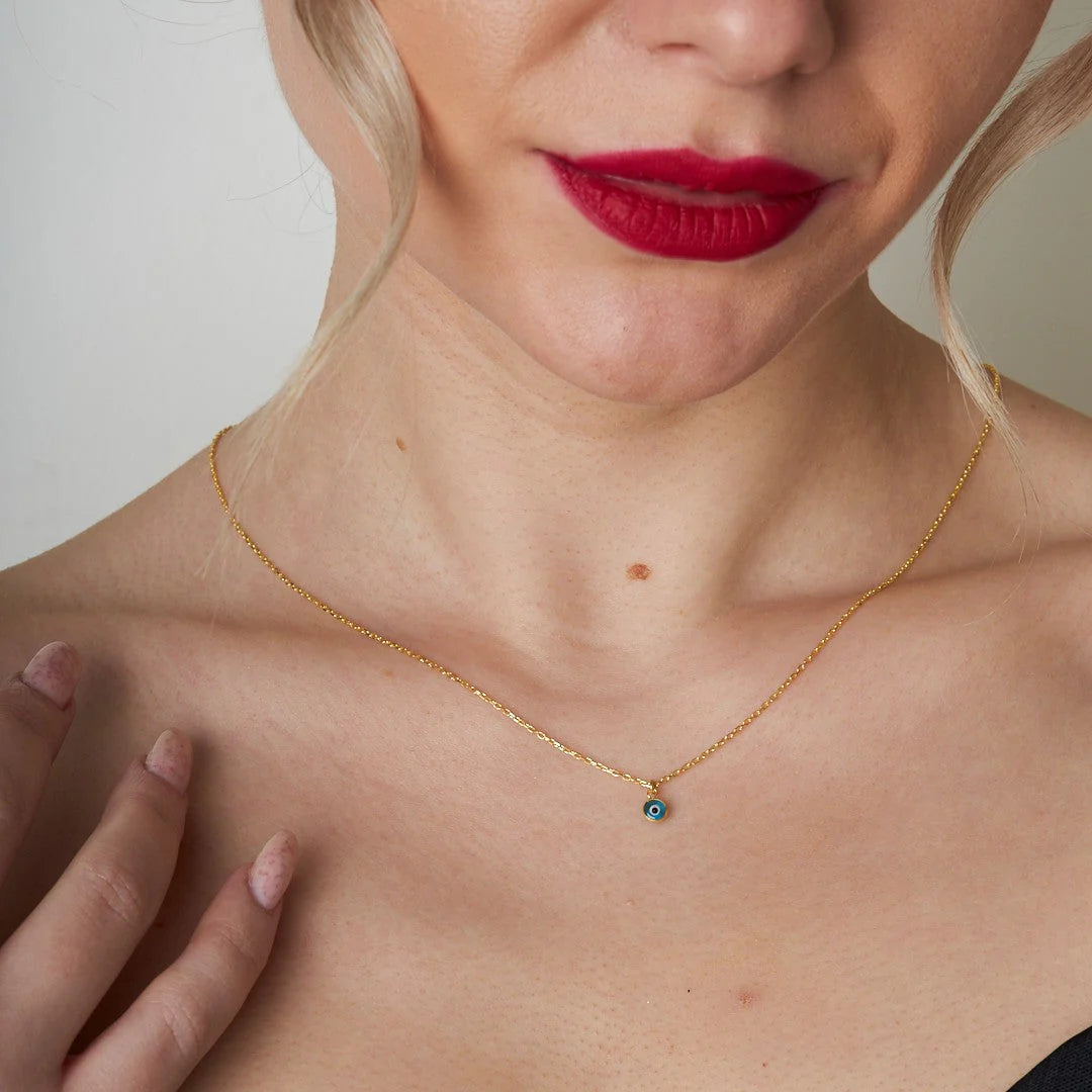 Küçük Taşlı Nazar Kolye | 925 Gümüş