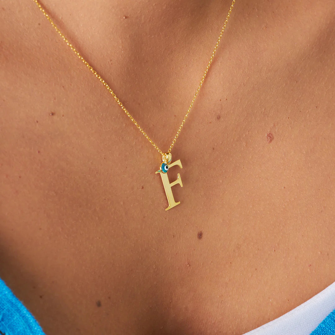 Nazar Boncuklu Harf Kolye | 925 Gümüş