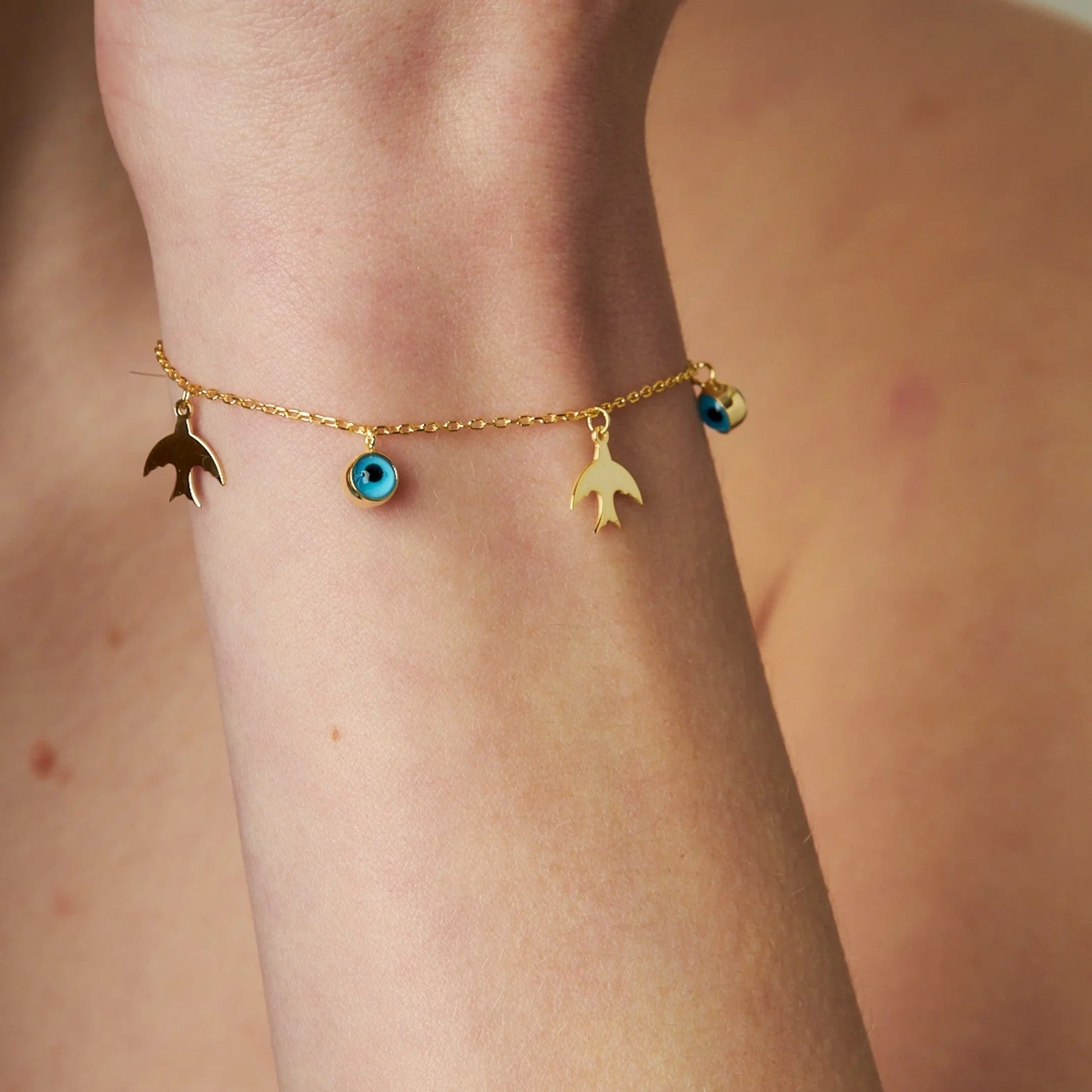 Nazarlı Kuş Detaylı Bileklik | 925 Gümüş