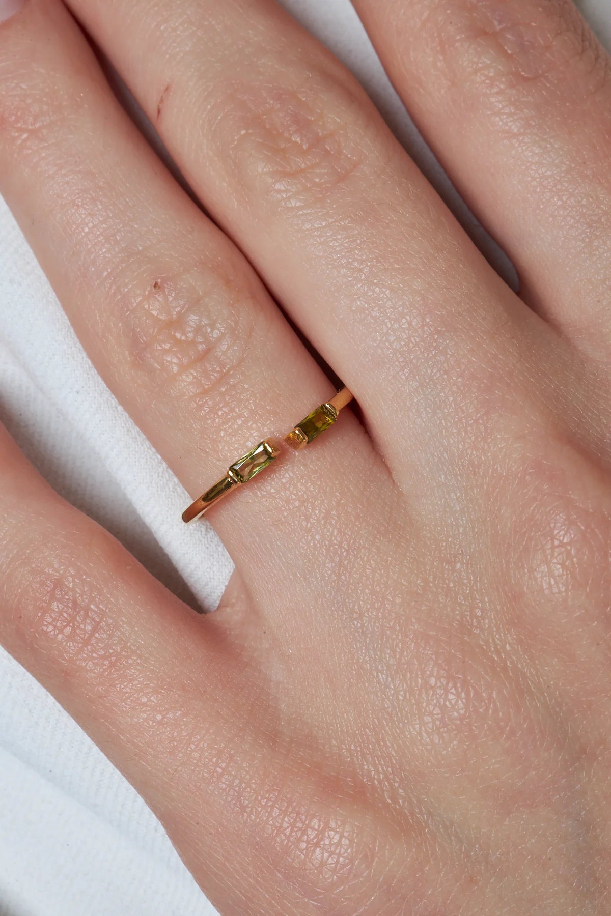 Peridot Taşlı Baget Yüzük | 925 Gümüş