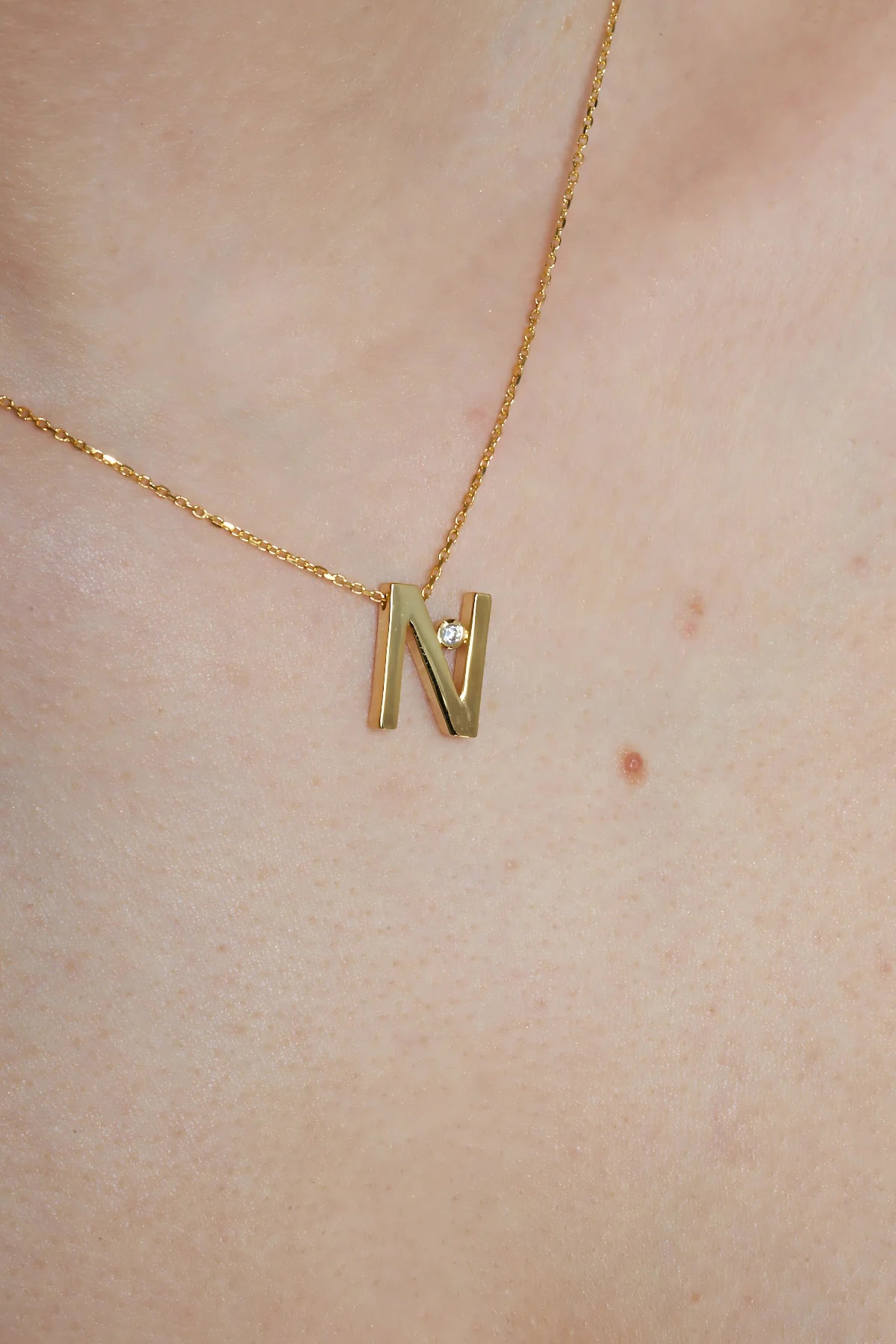 Pırlanta Taşlı Harf Kolye | 925 Gümüş