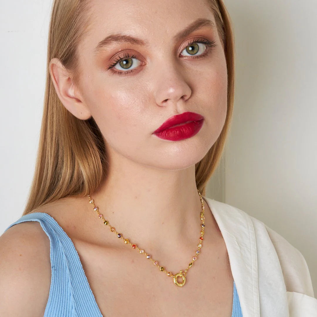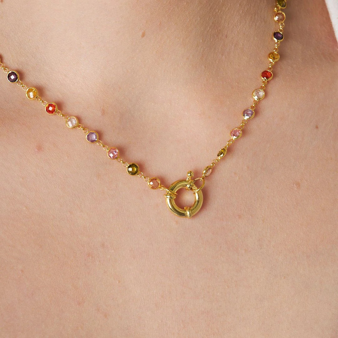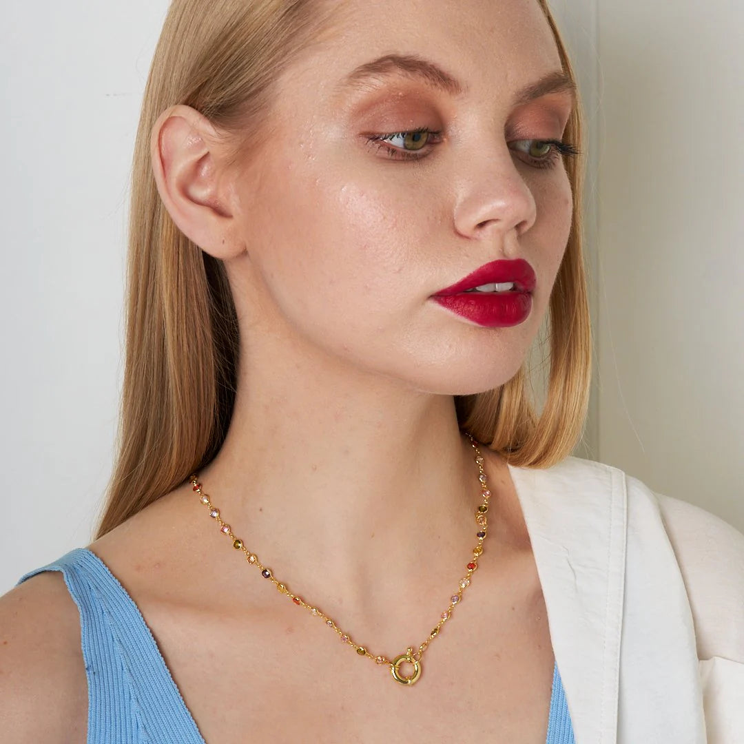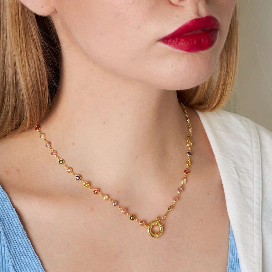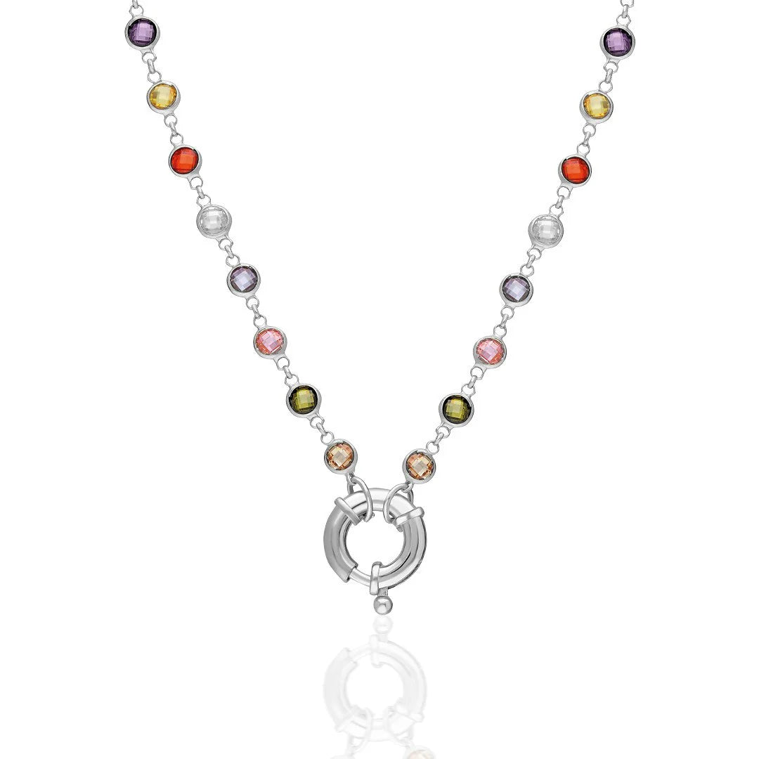Renkli Taşlı Kilit Zincir | 925 Gümüş