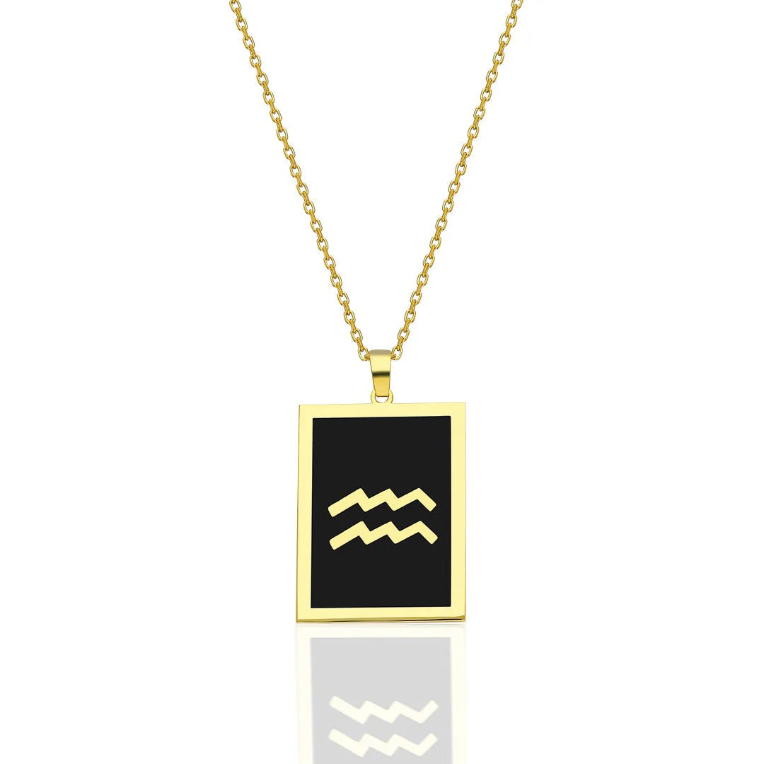 Siyah Dikdörtgen Kova Burcu Kolye | 925 Gümüş