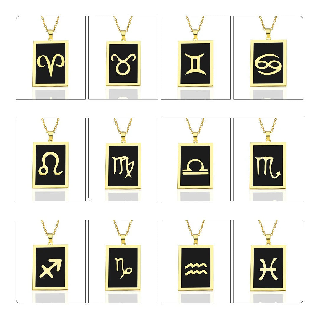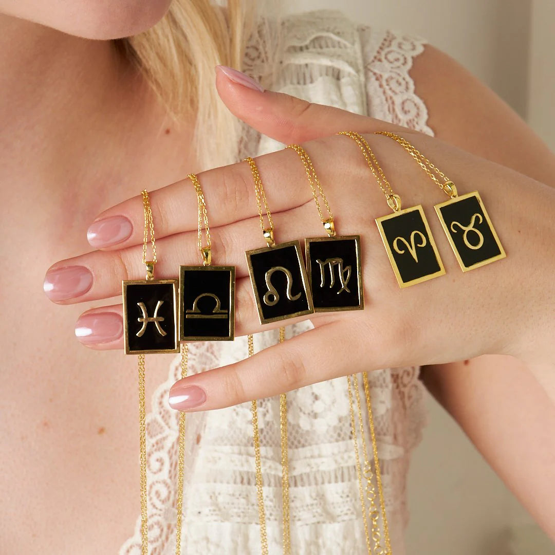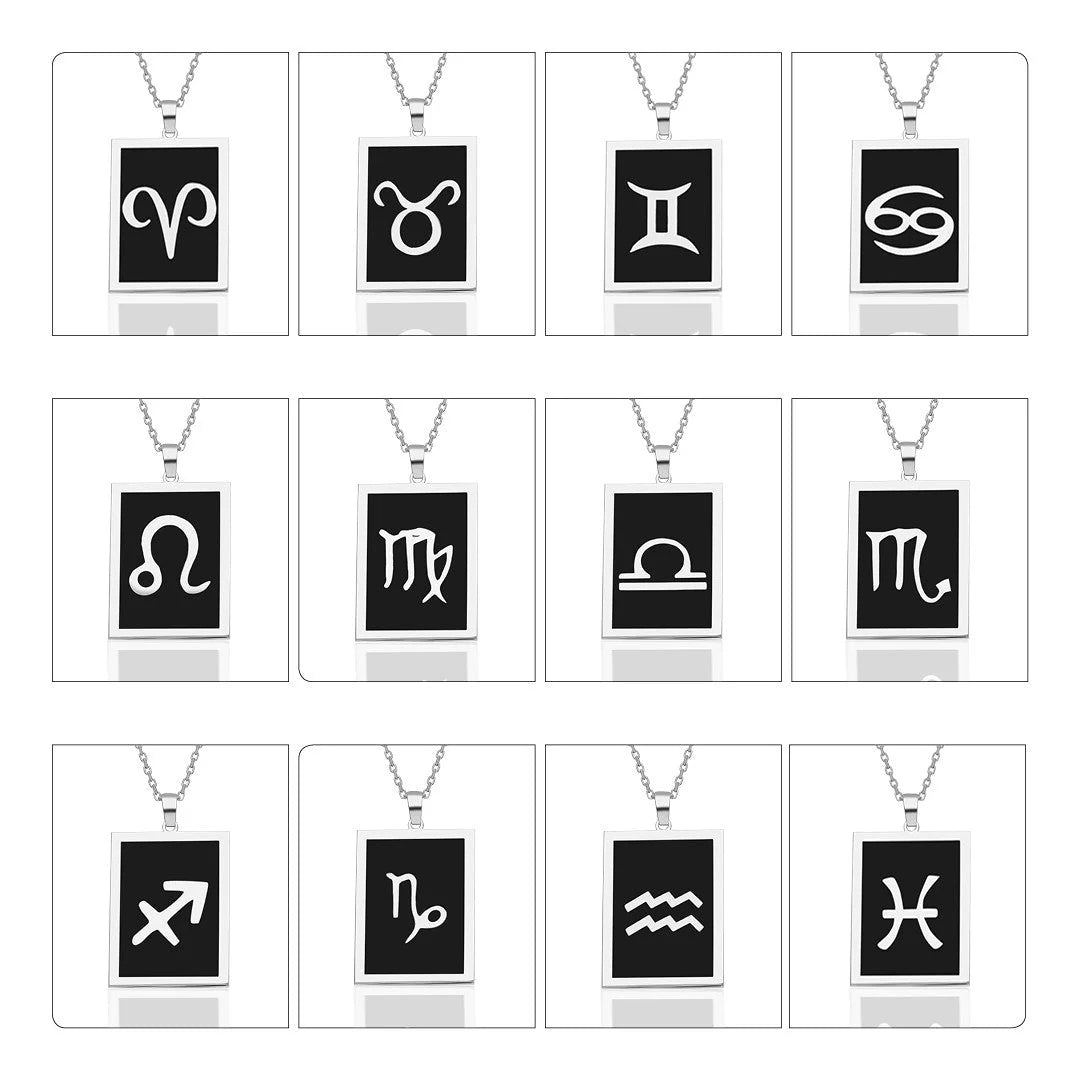 Siyah Dikdörtgen Terazi Burcu Kolye | 925 Gümüş