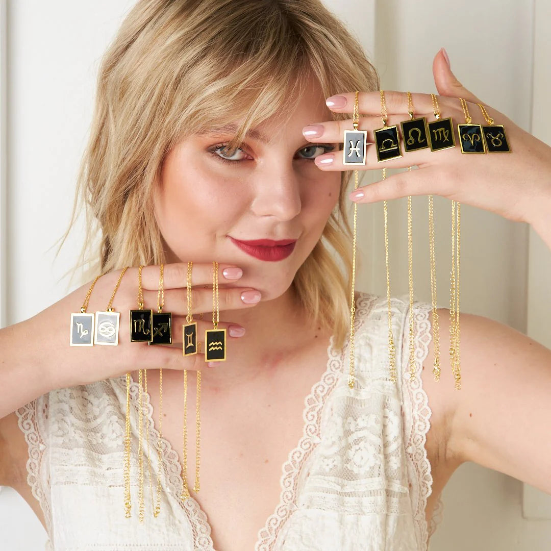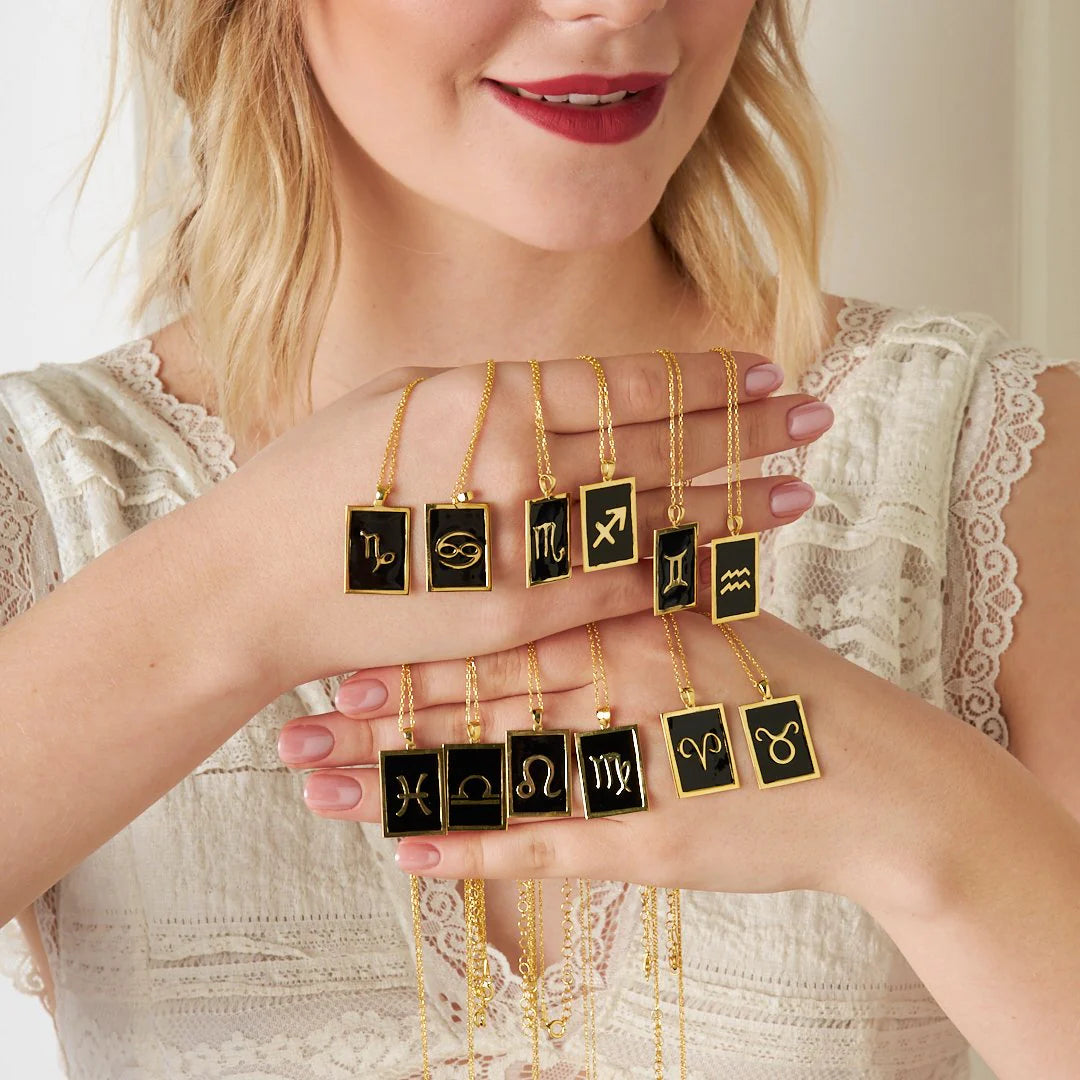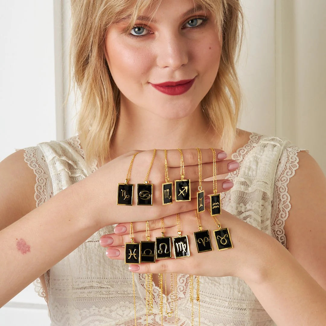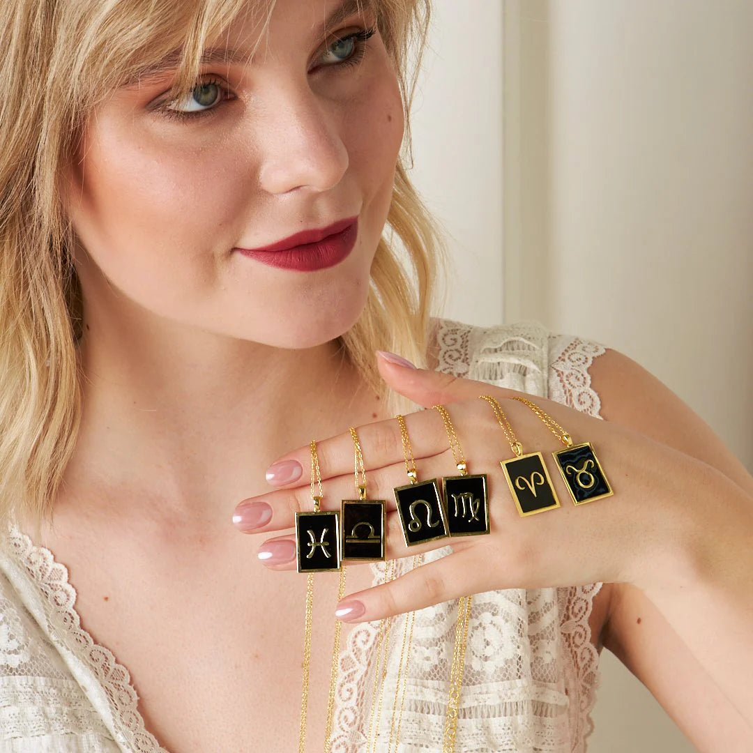 Siyah Dikdörtgen Terazi Burcu Kolye | 925 Gümüş