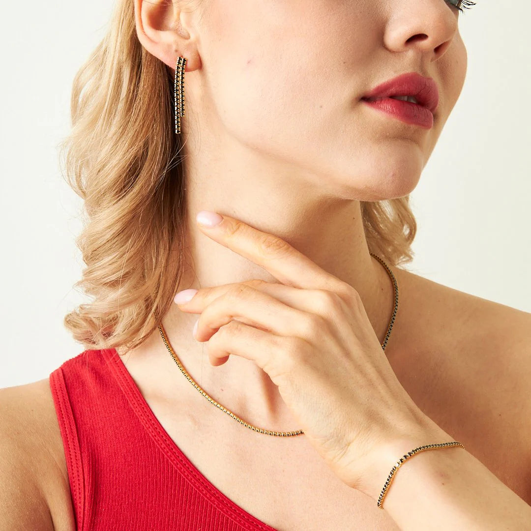Siyah Taşlı Su Yolu Seti | 925 Gümüş