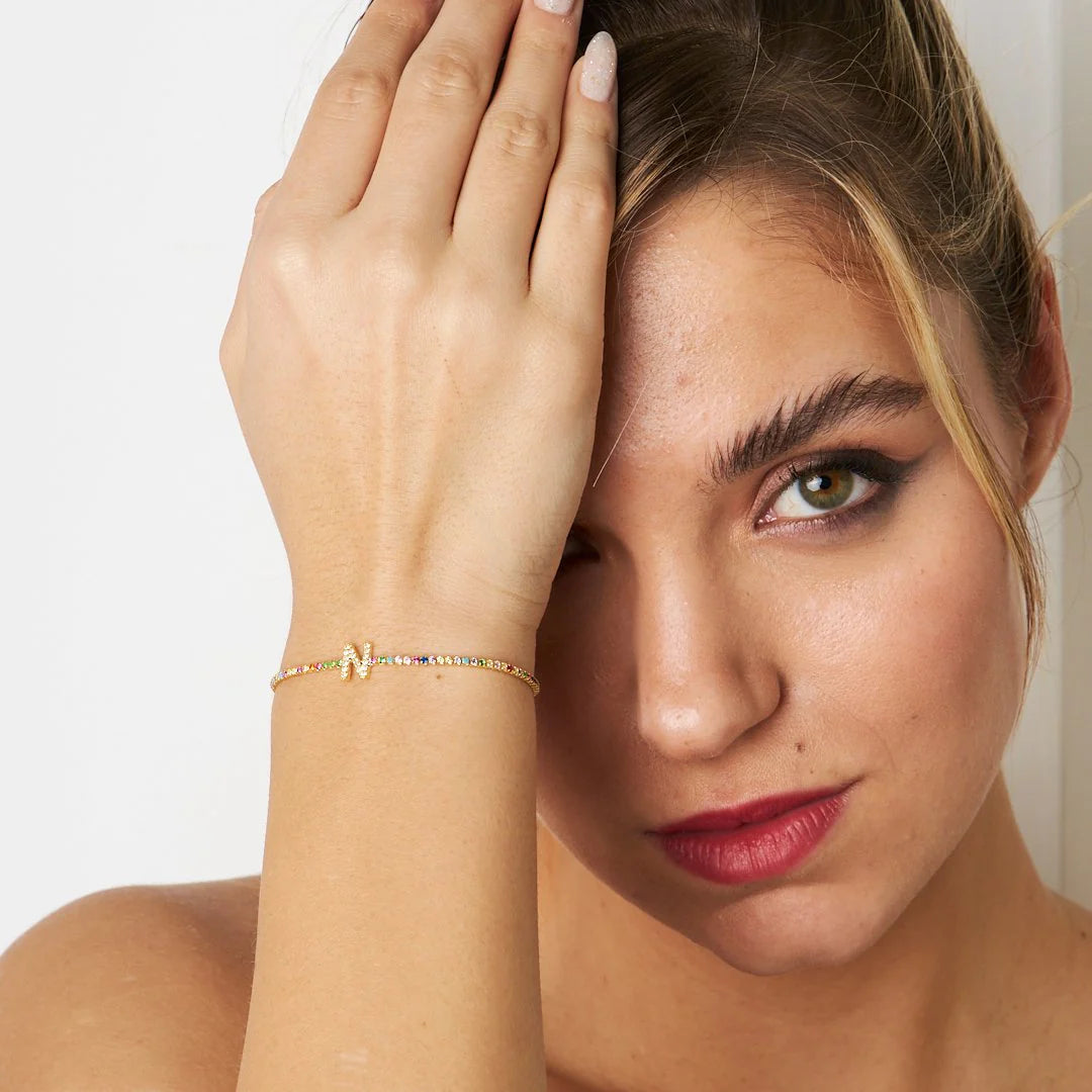 Su Yolu Zincirli Tek Harf Bileklik | 925 Gümüş