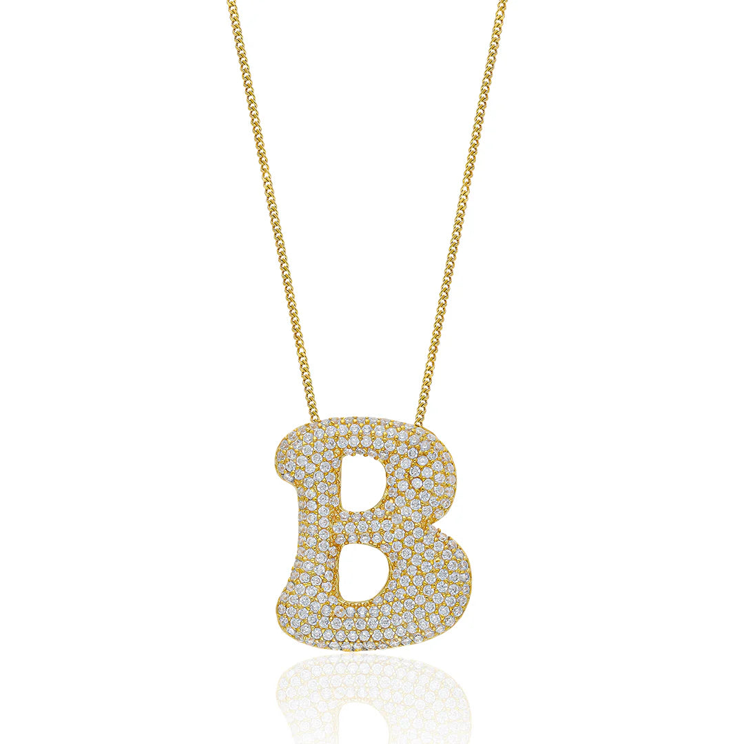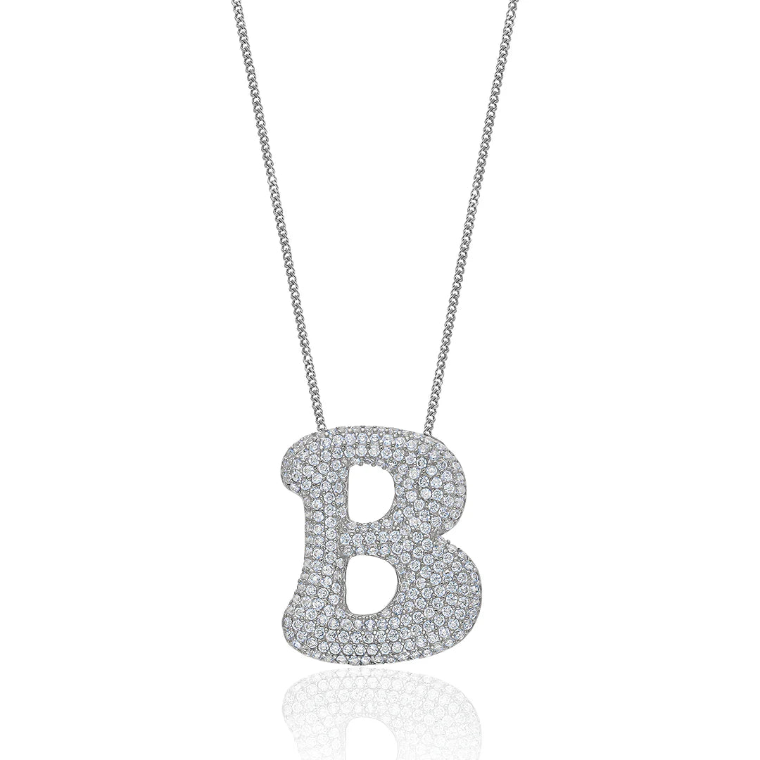 Taşlı Büyük Balon Harf Kolye | 925 Gümüş