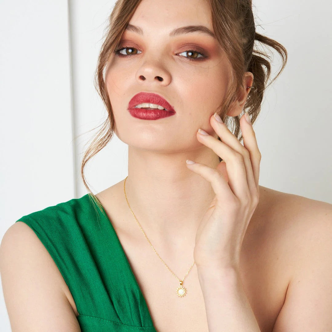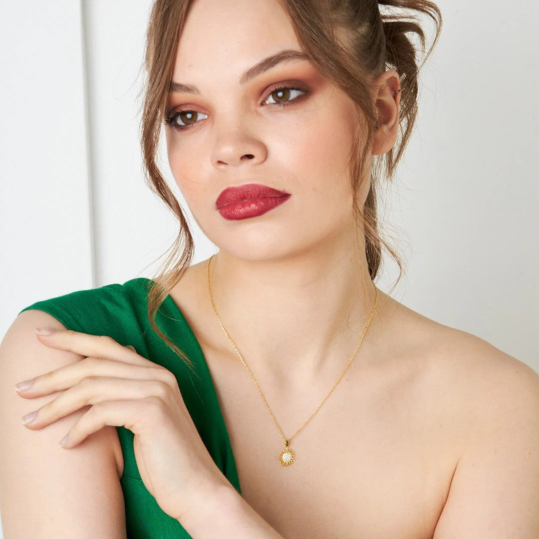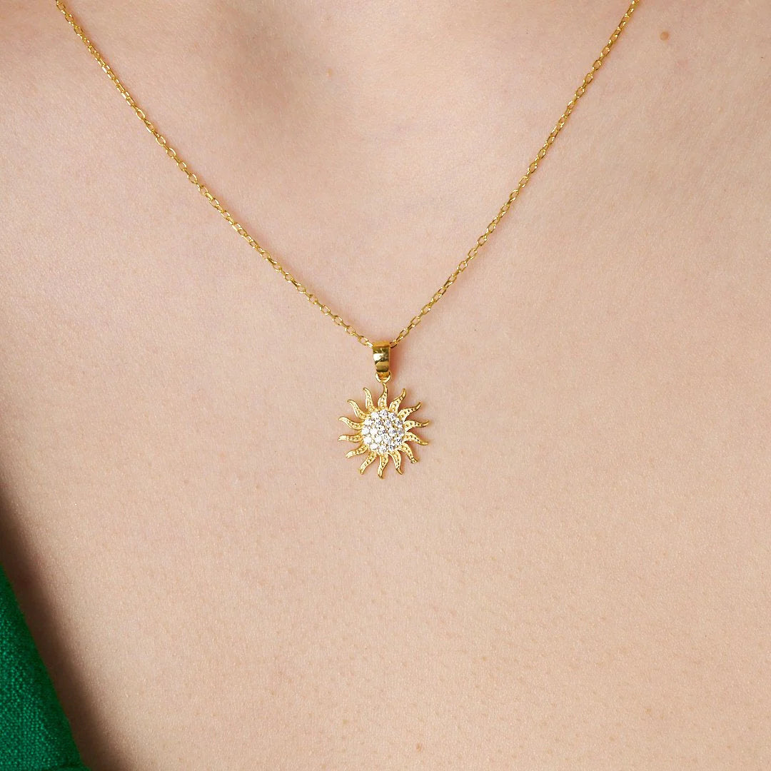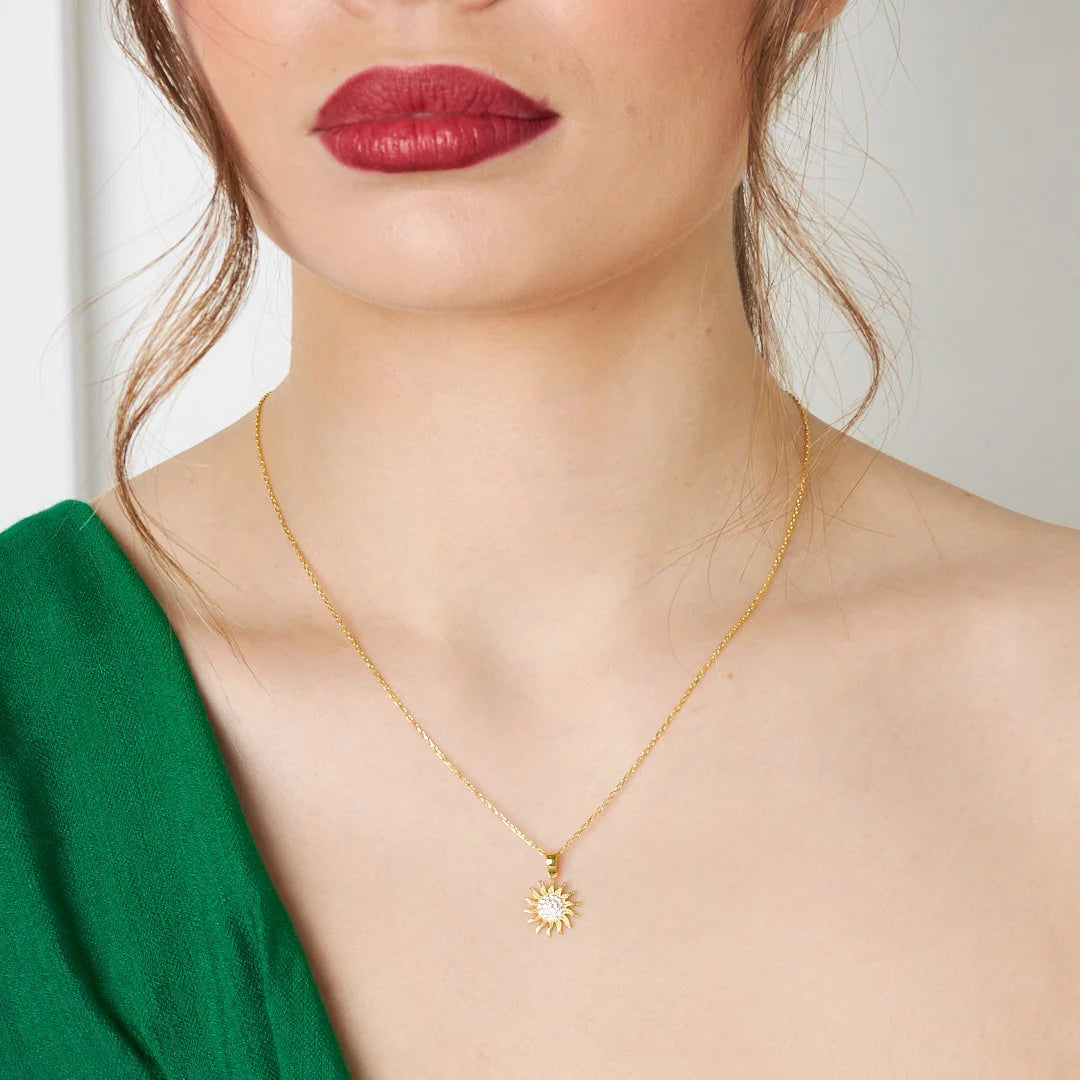 Taşlı Güneş Kolye | 925 Gümüş