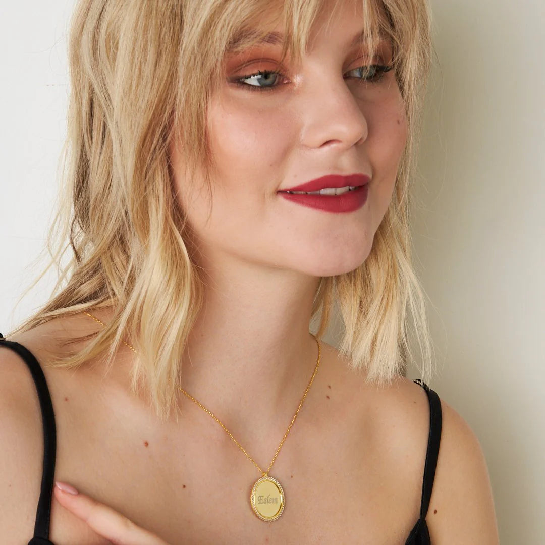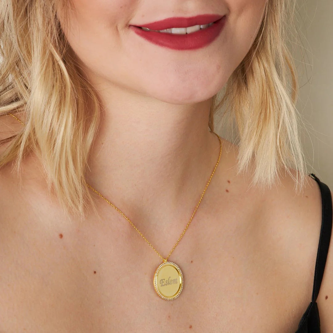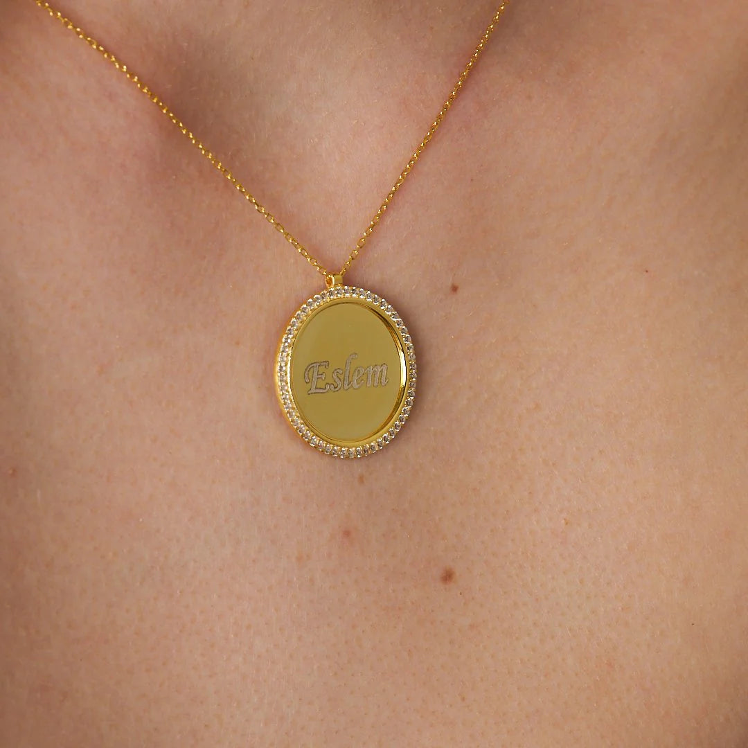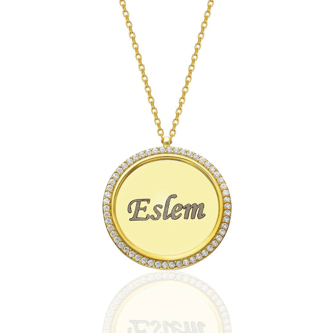 Taşlı Plaka İsim Kolye | 925 Gümüş