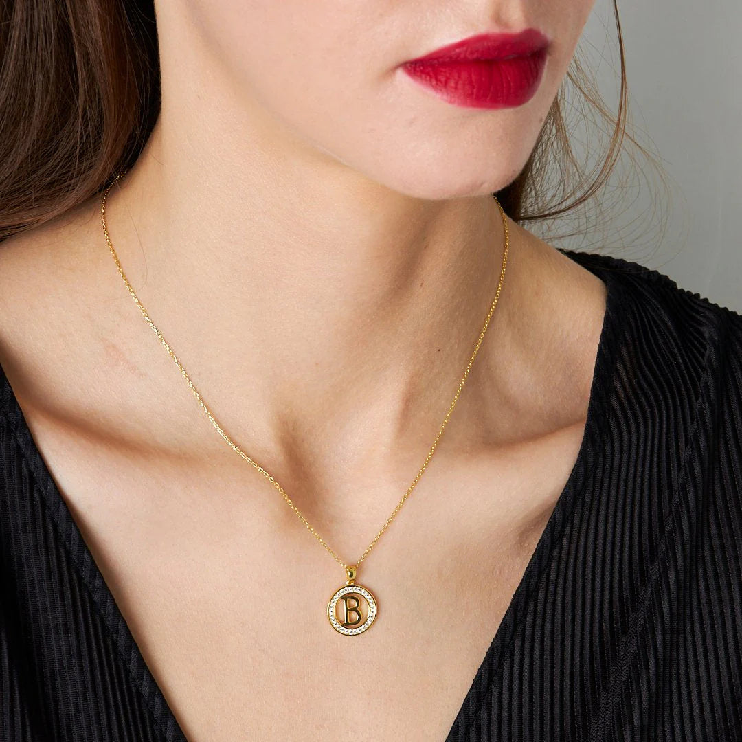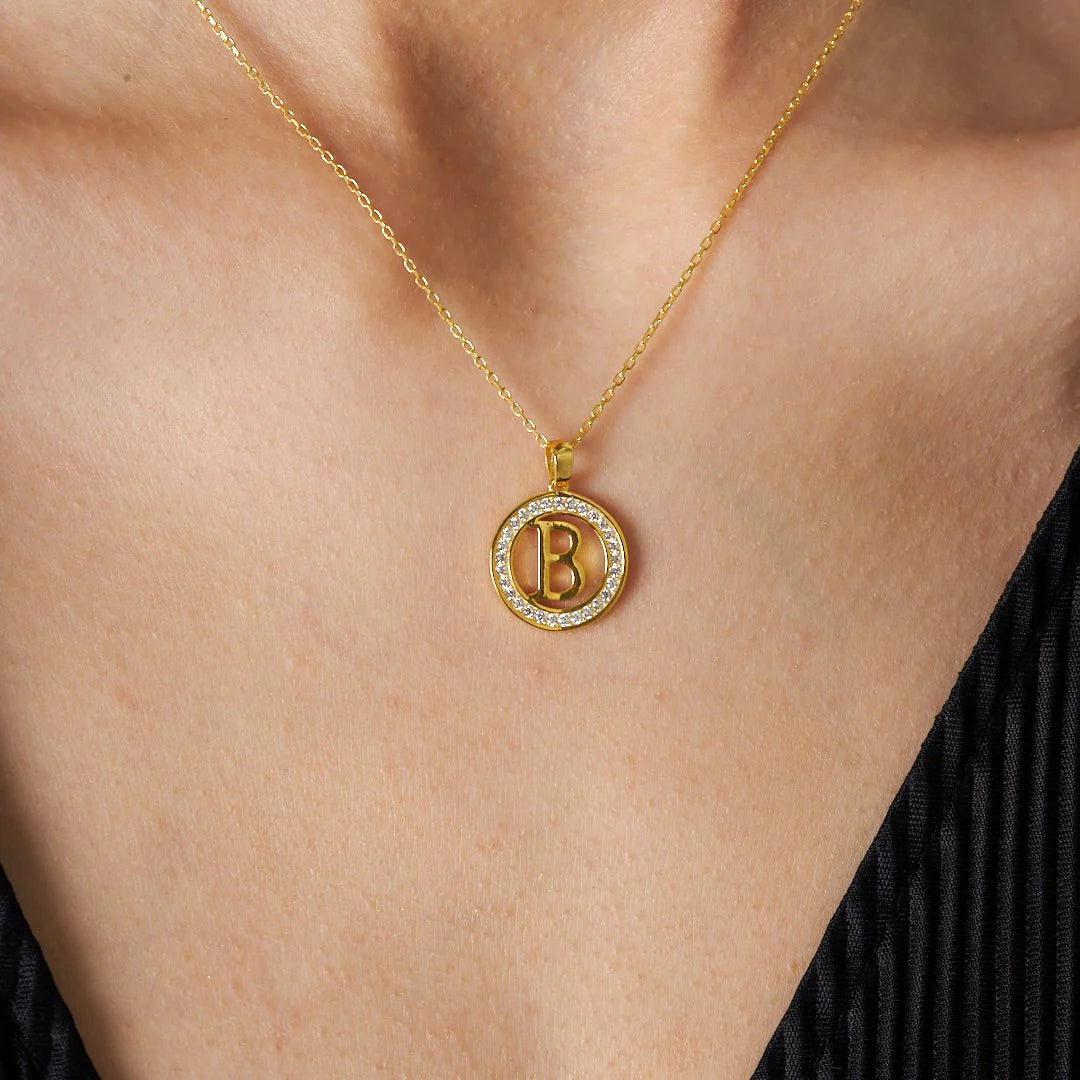 Taşlı Tasarım Harf Kolye | 925 Gümüş