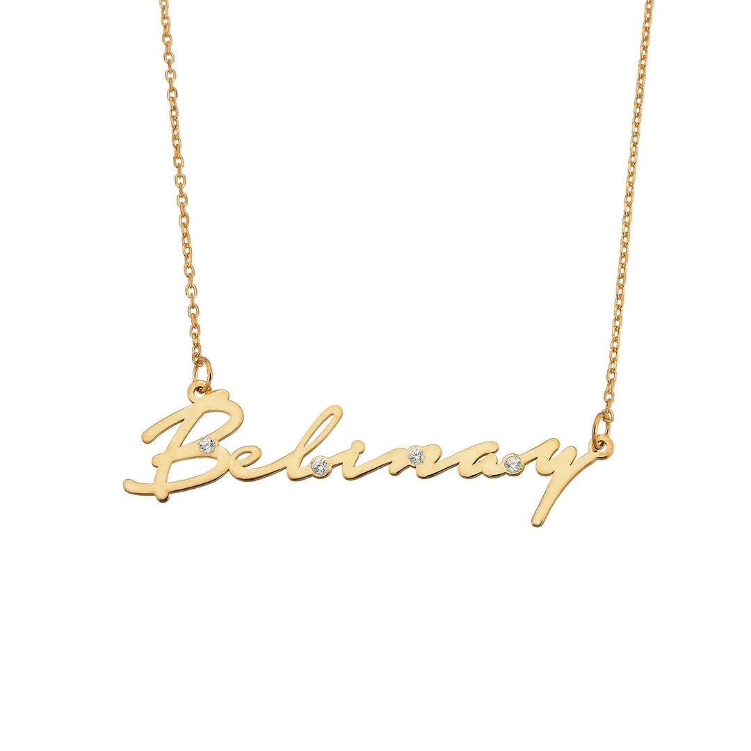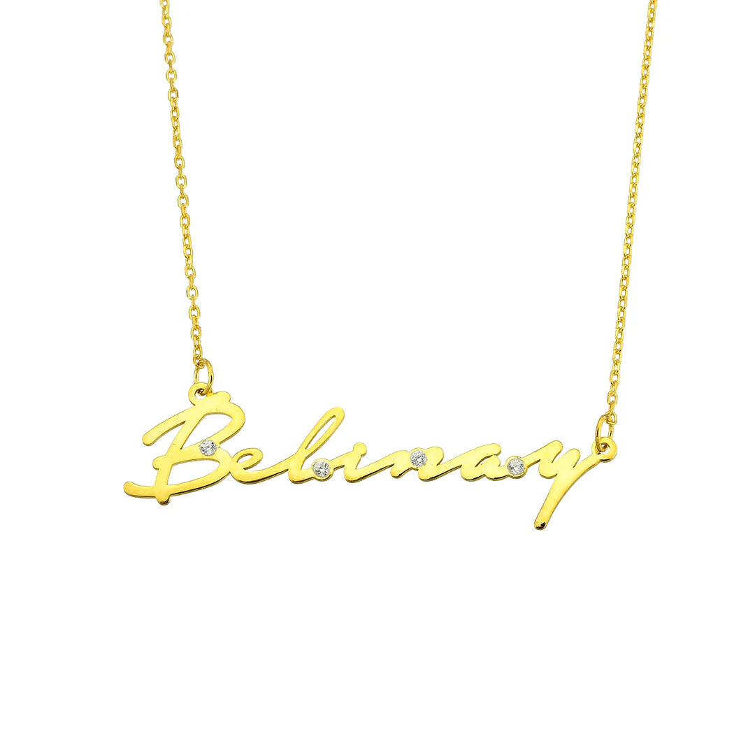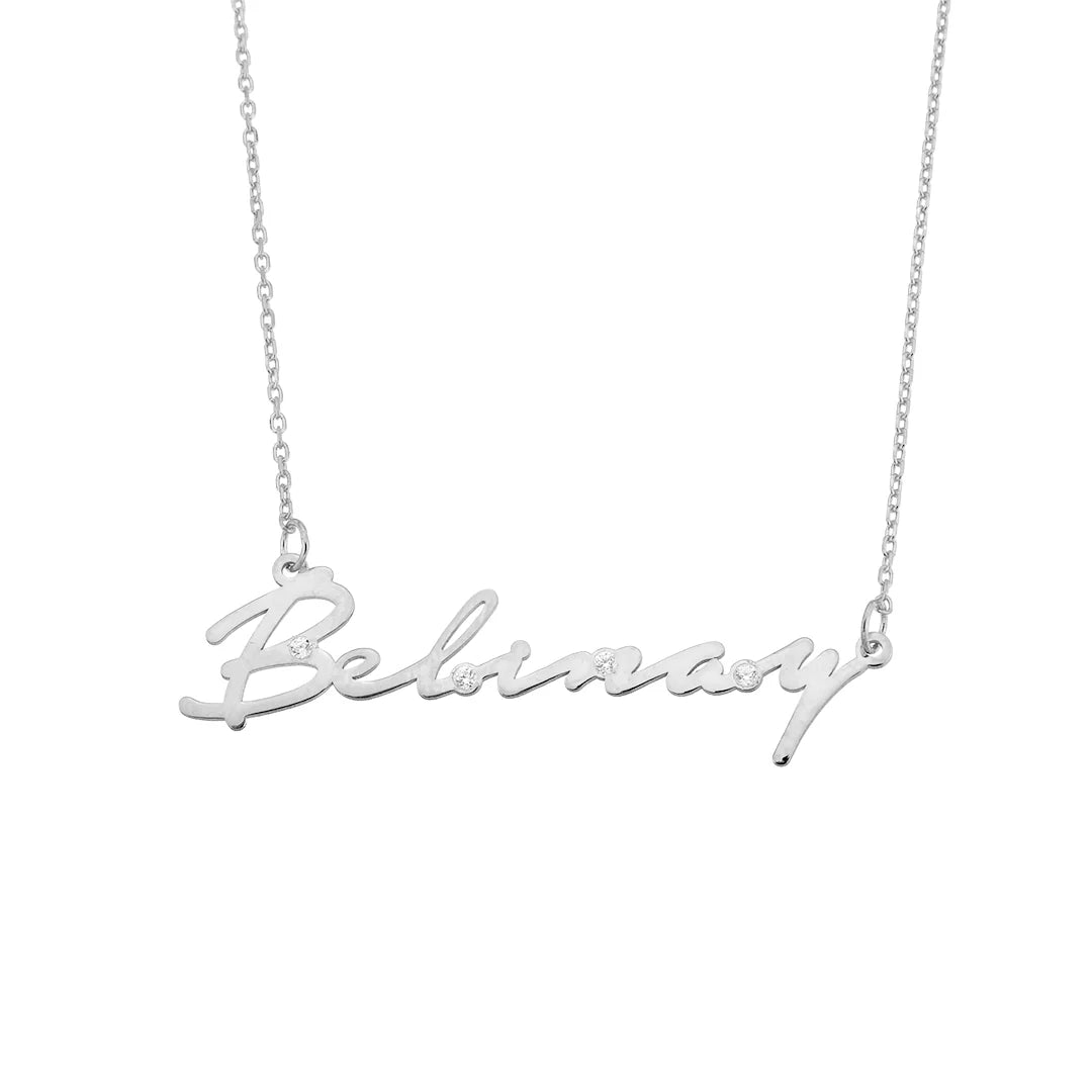 Taşlı Yatay İmza Kolye | 925 Gümüş