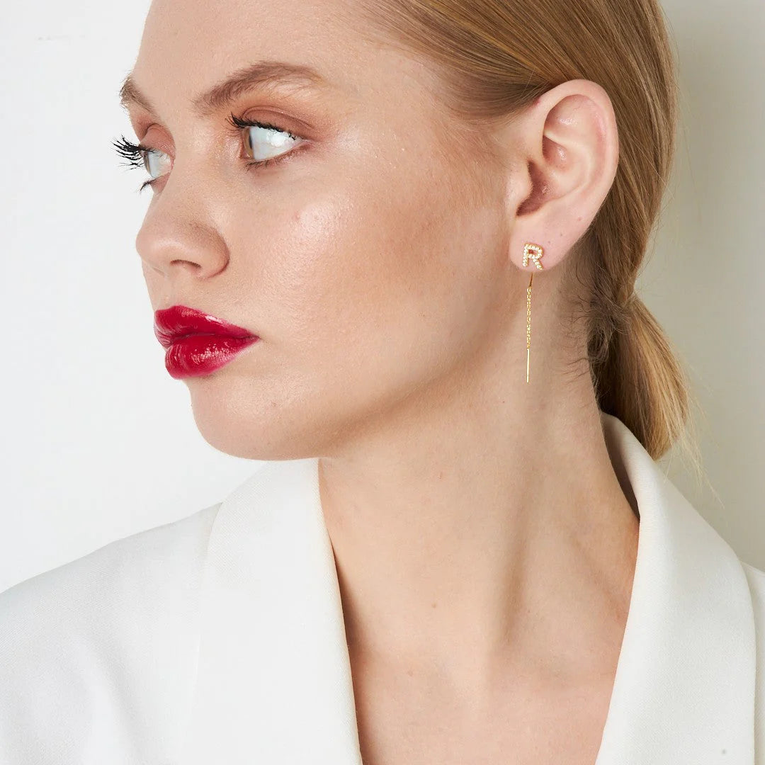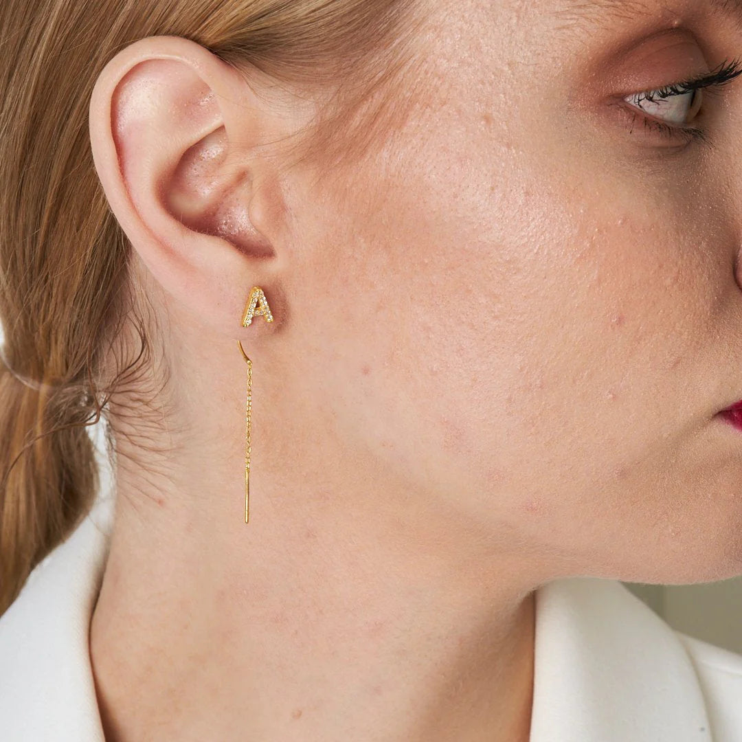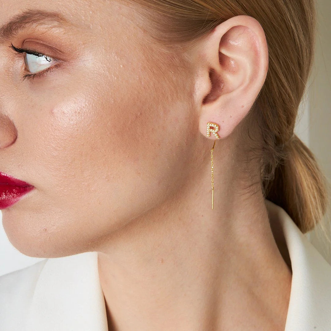 Taşlı Zincirli Harf Küpe | 925 Gümüş