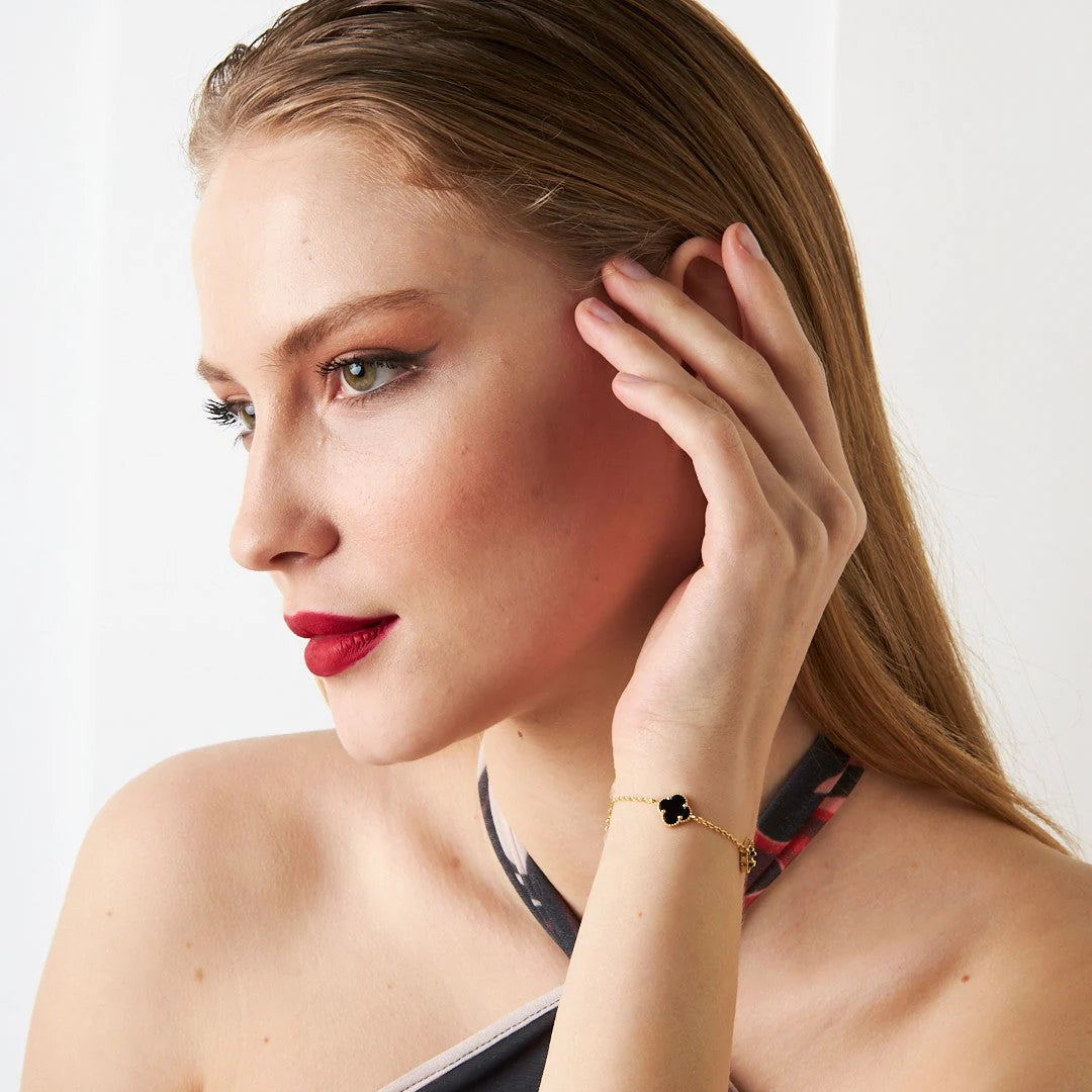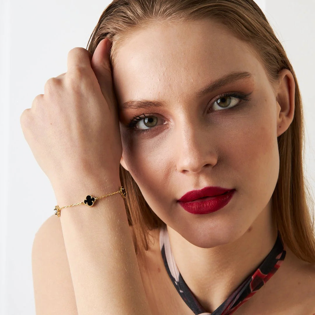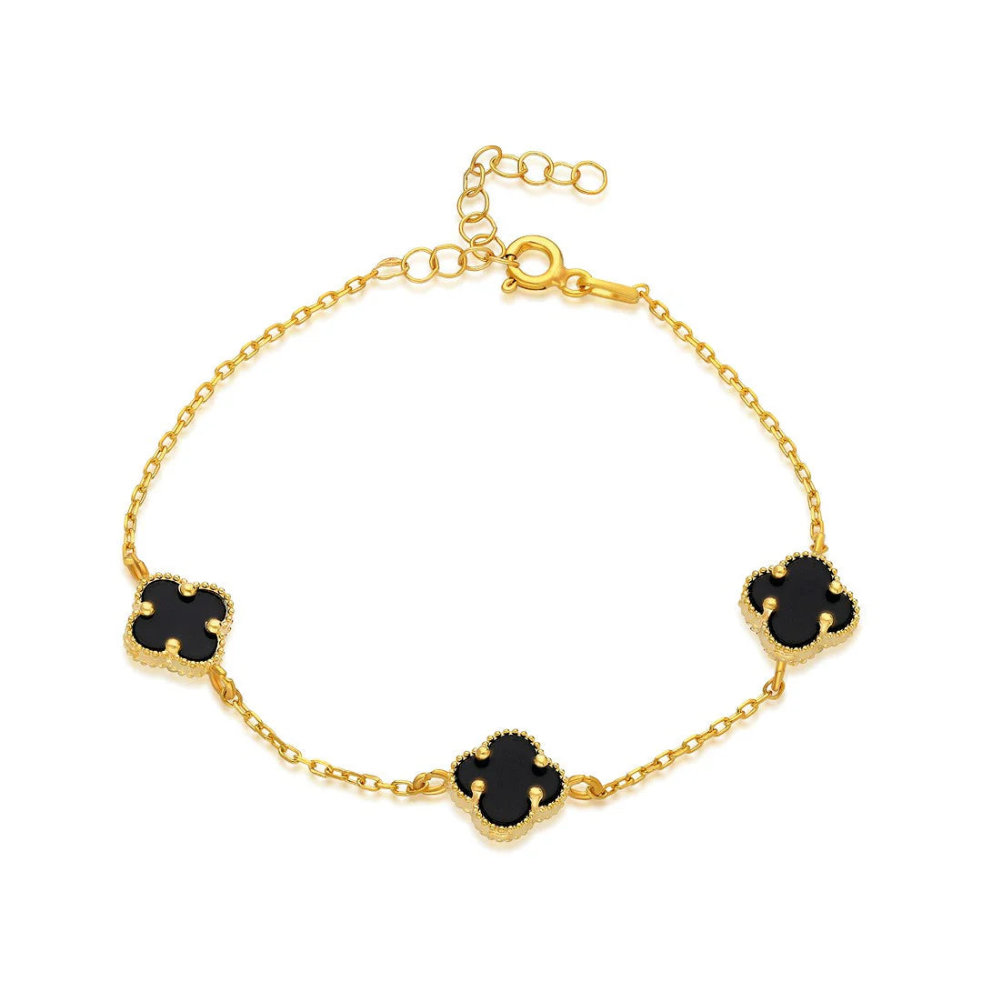 Üçlü Siyah Yonca Bileklik | 925 Gümüş