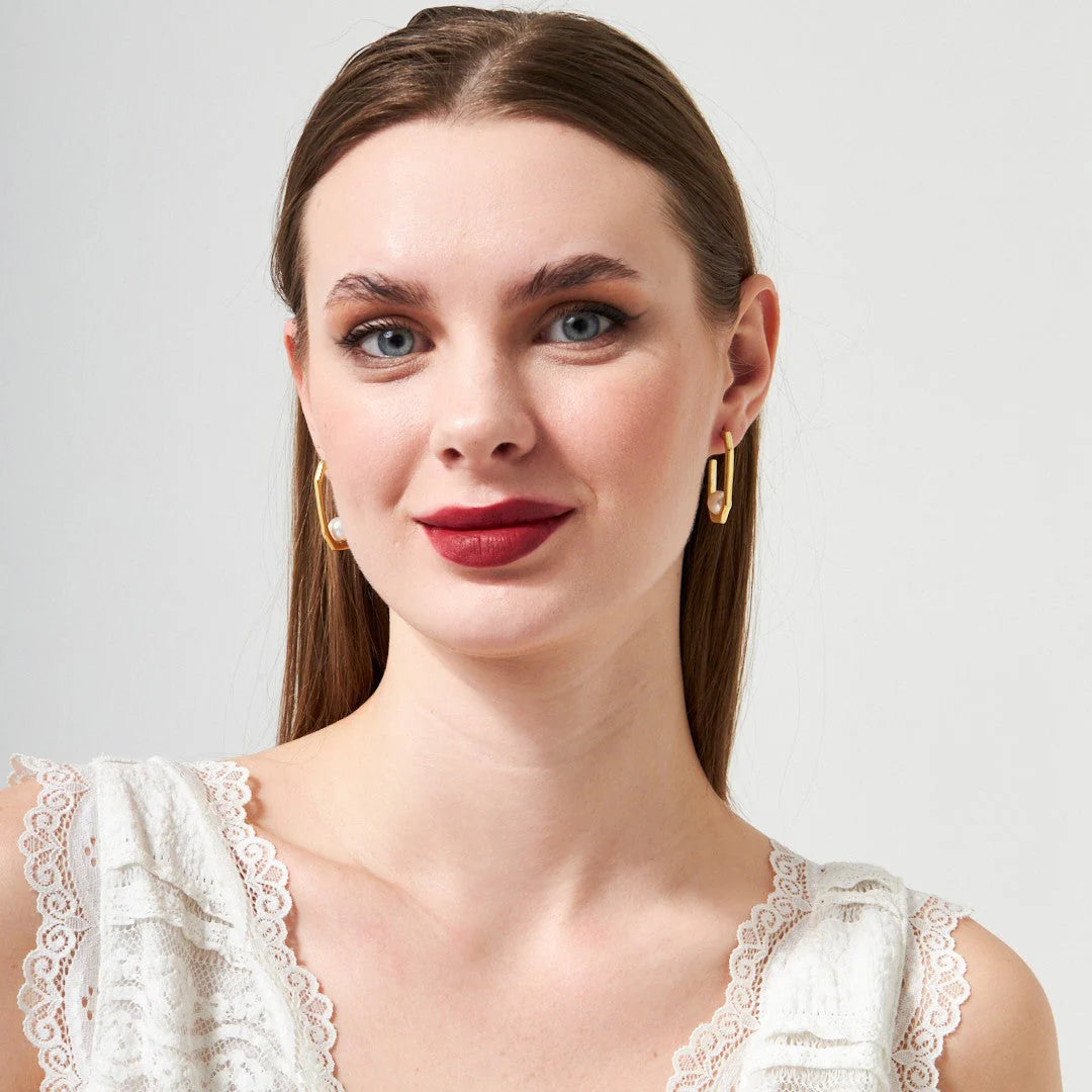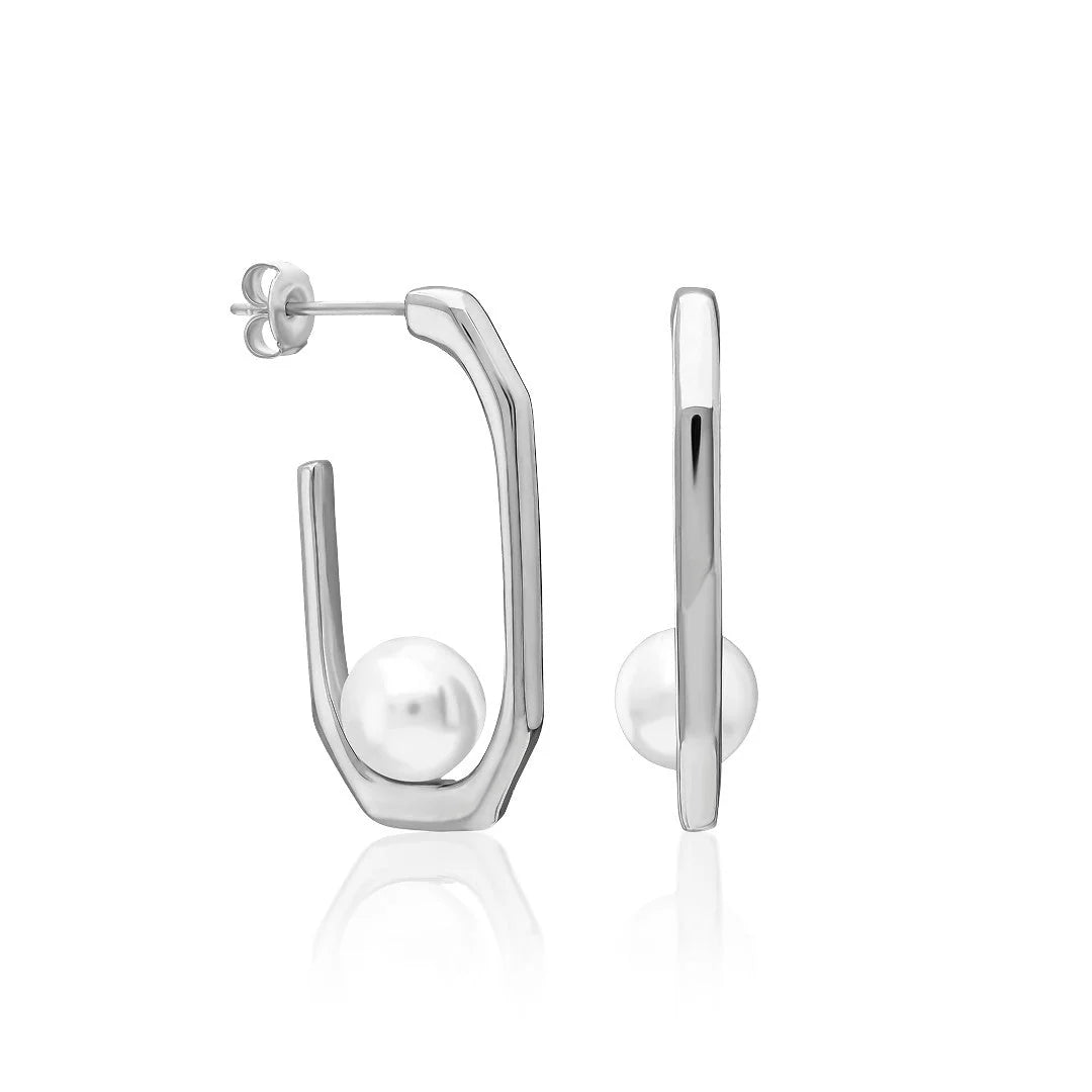 Yarım Yuvarlak İncili Küpe | 925 Gümüş