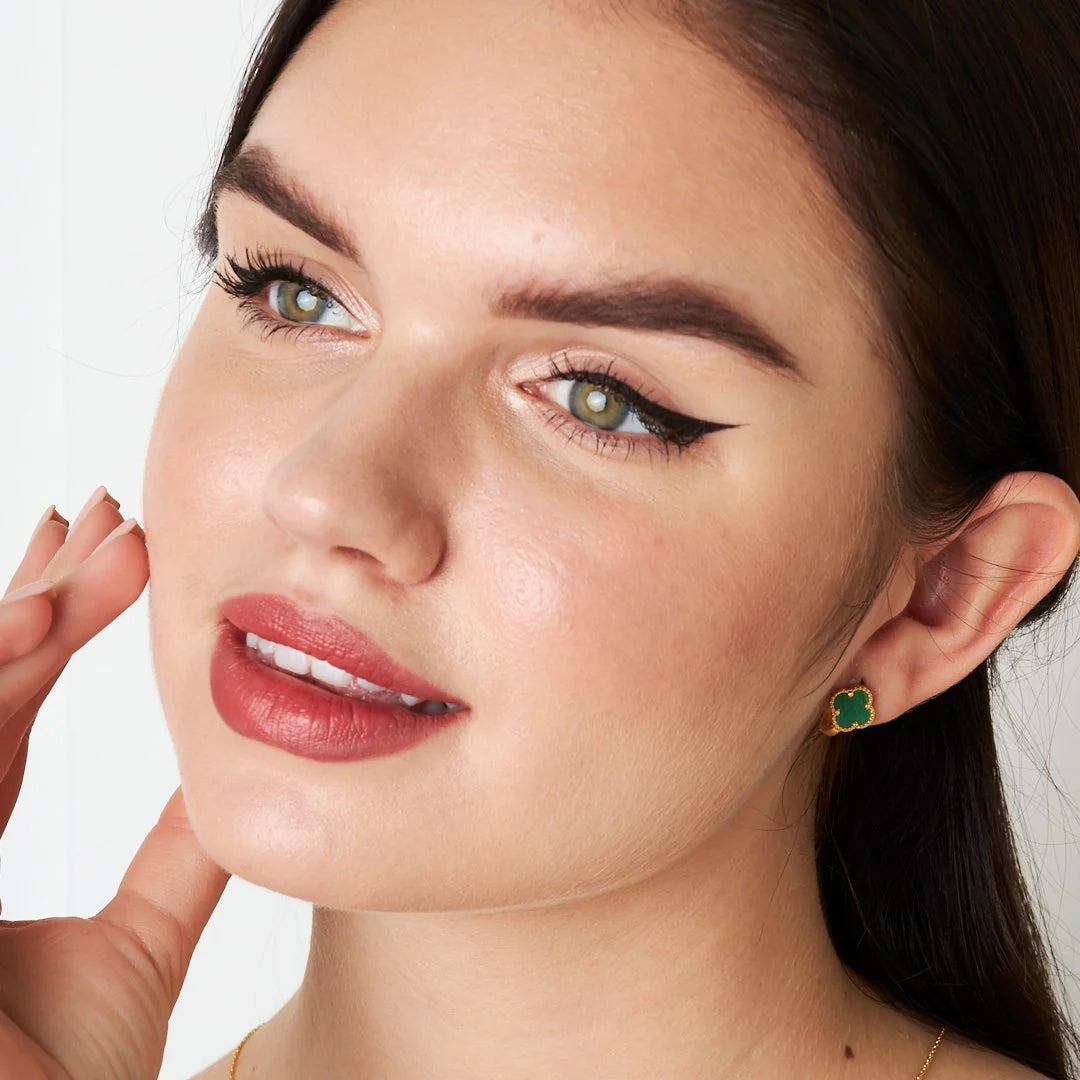Yeşil Taşlı Yonca Yaprağı Küpe | 925 Gümüş