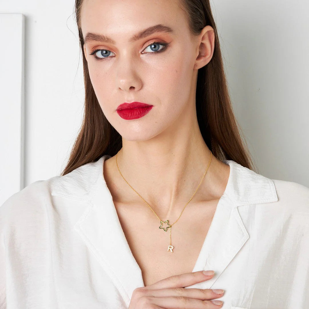 Yıldızlı Harf Sallantılı Kolye | 925 Gümüş